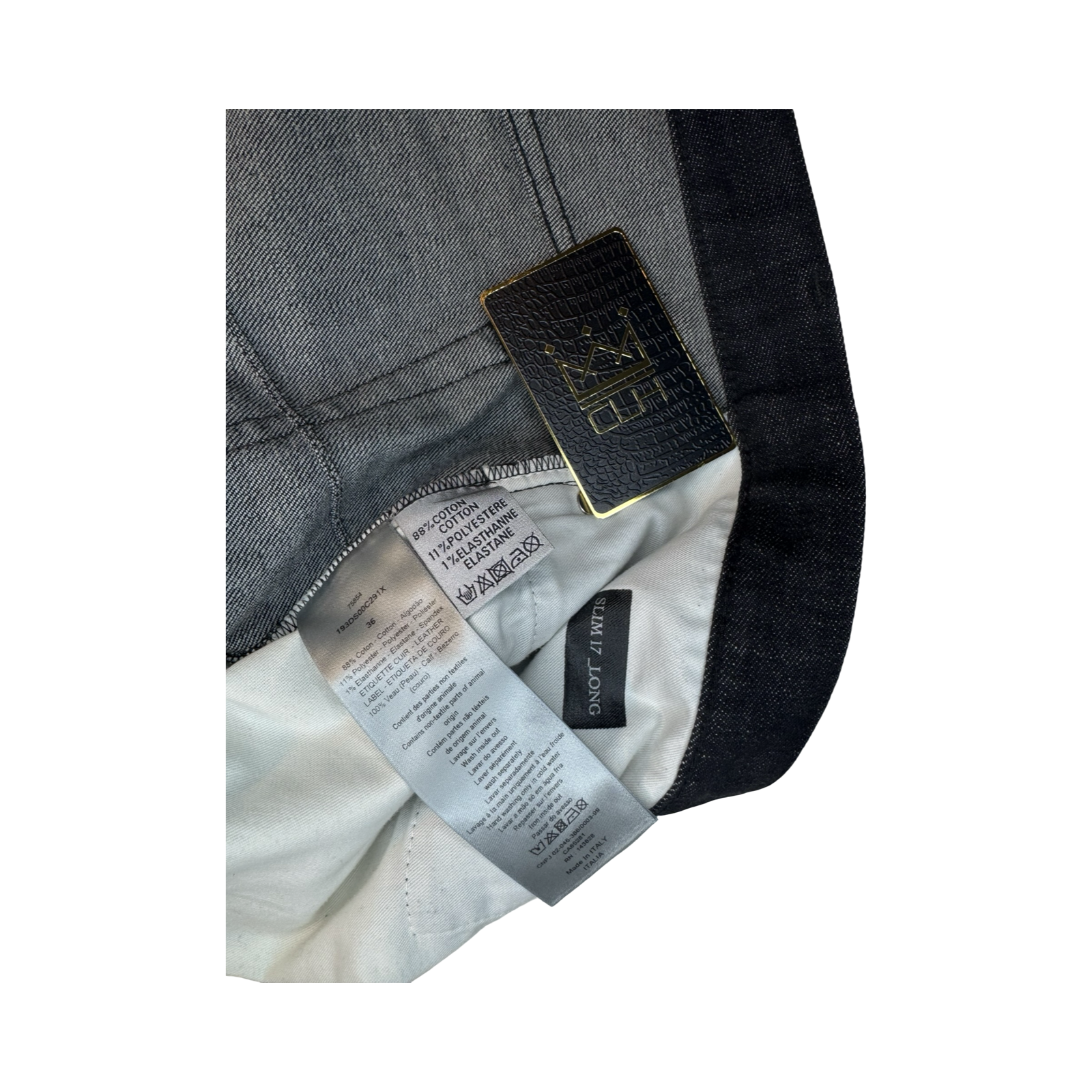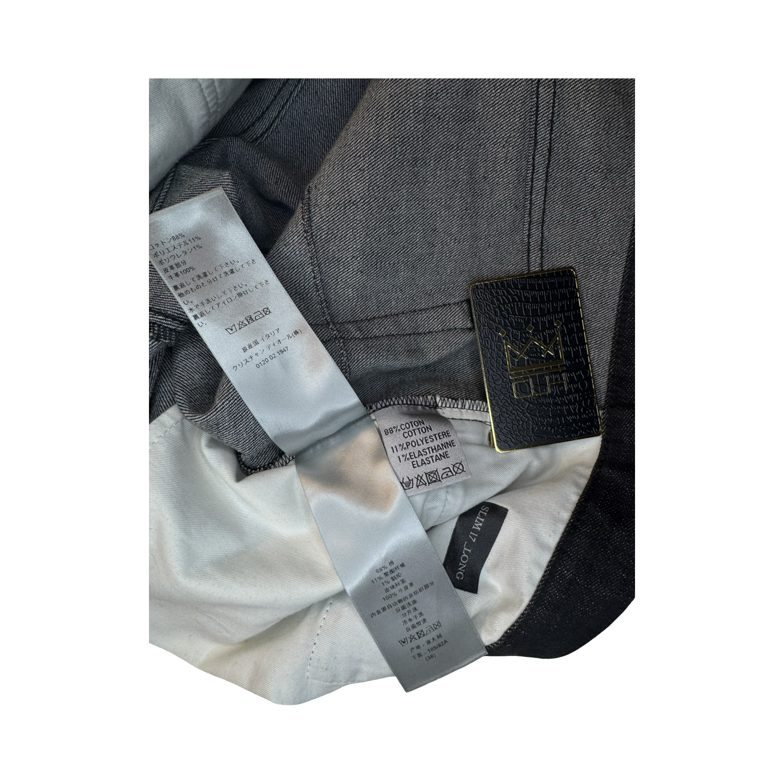 DETAILS: The iconic Dior denim jeans with exposed oblique monogram in pixelated design at the bottom. Slim fit. Made in Italy.