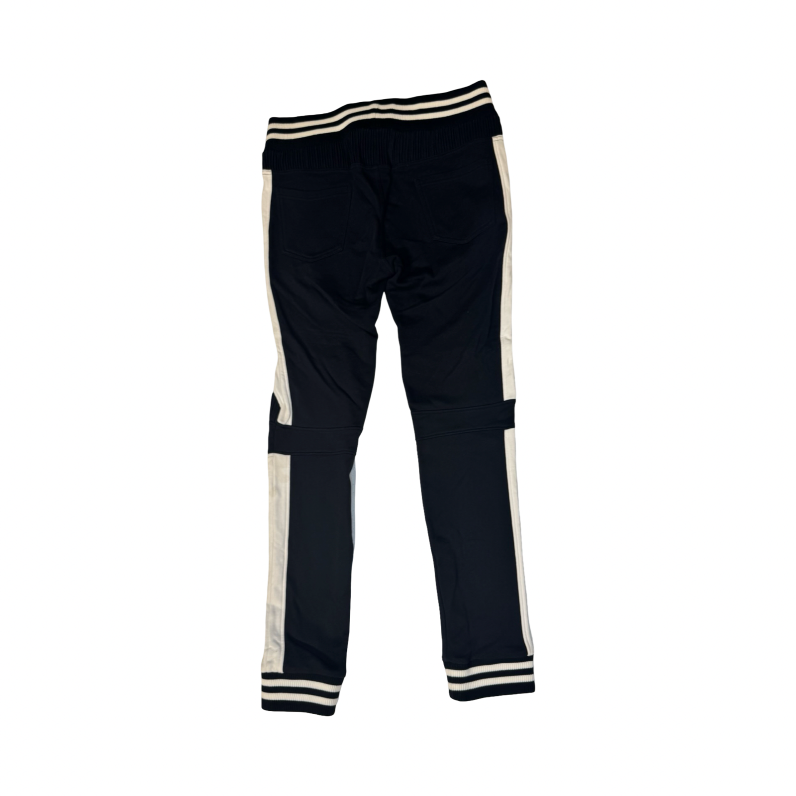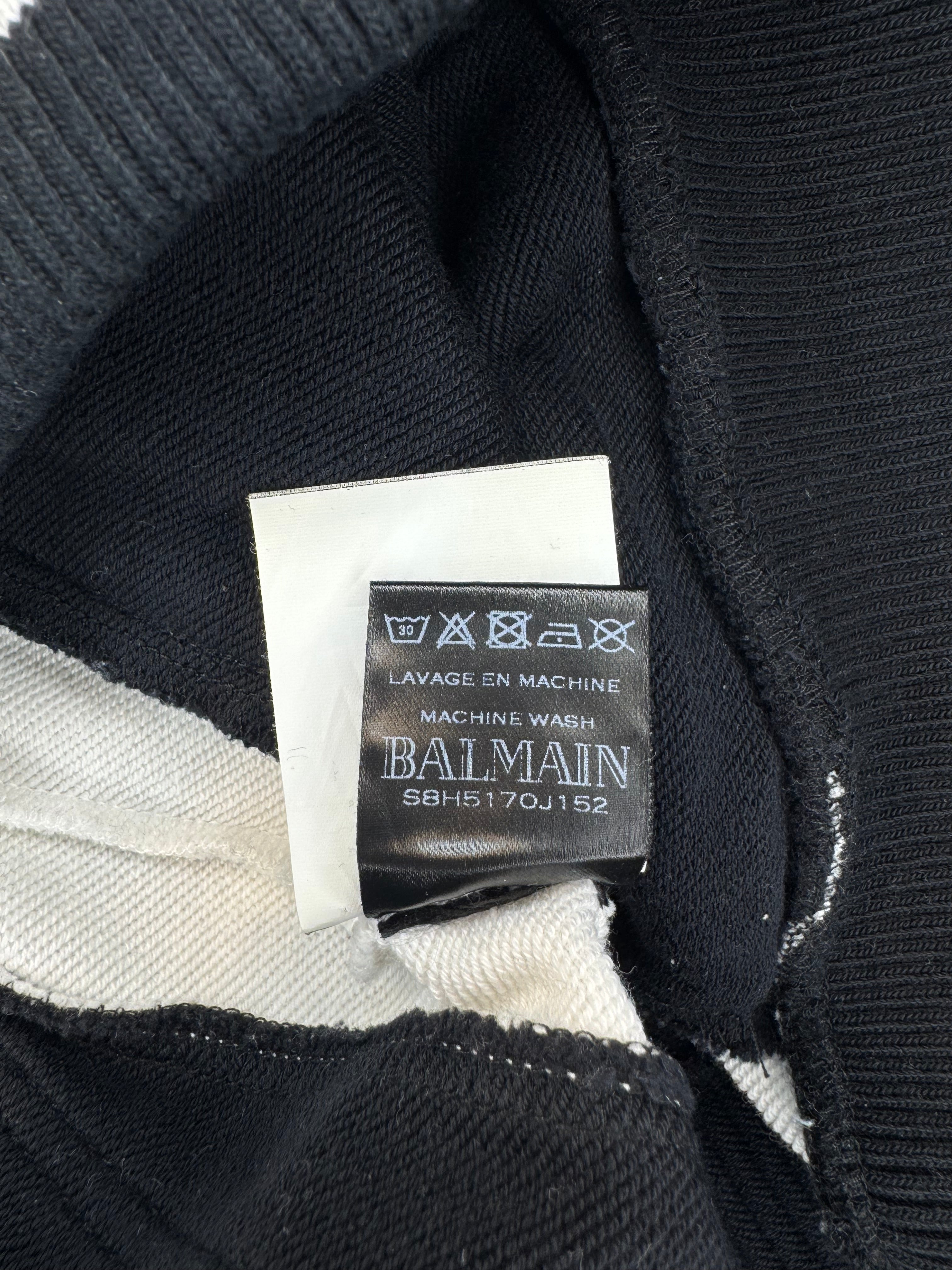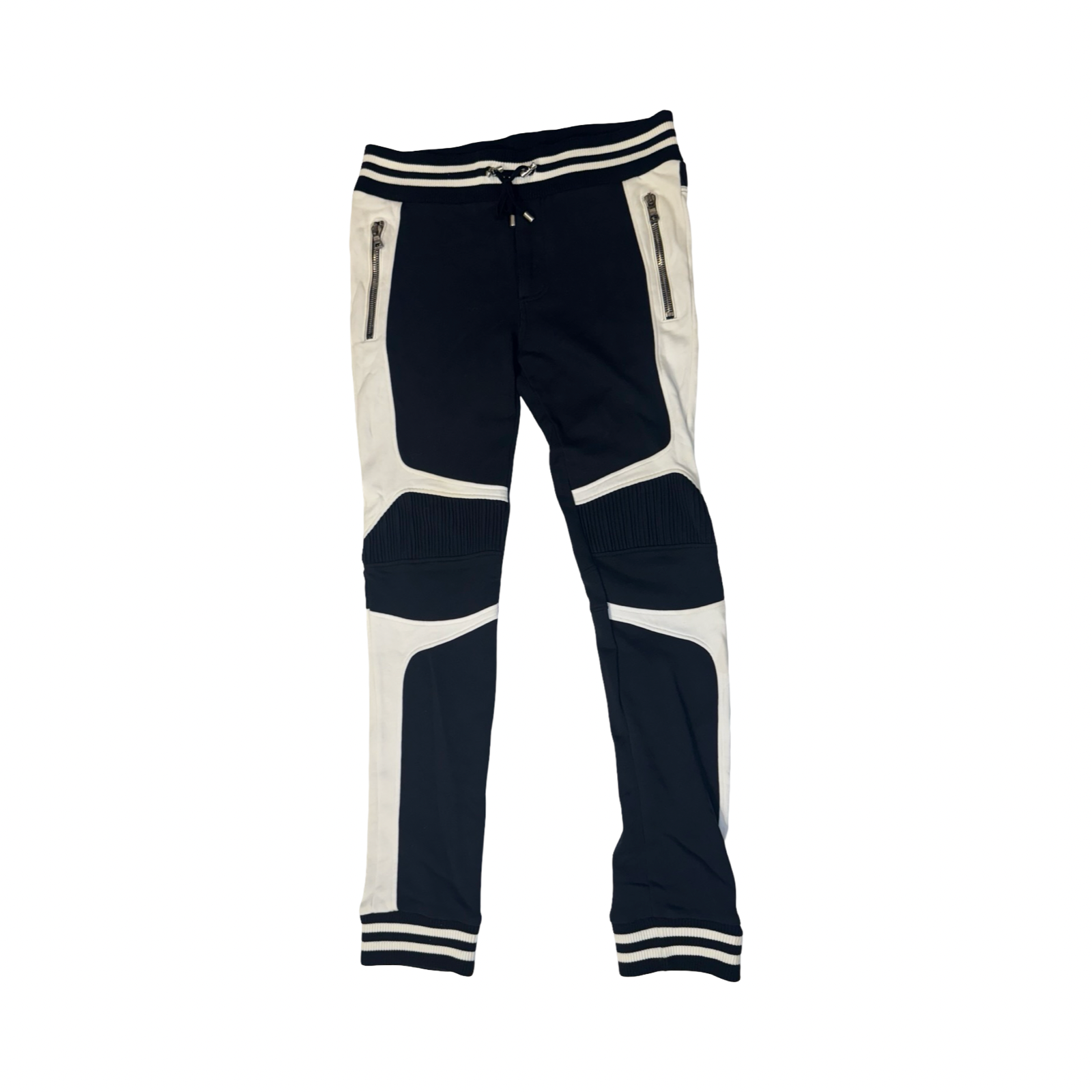 DETAILS: Balmain Joggers offer the signature biker design with zipper pockets and patches, cuffed ankles. Contrasting black and white pants. Made in Portugal.