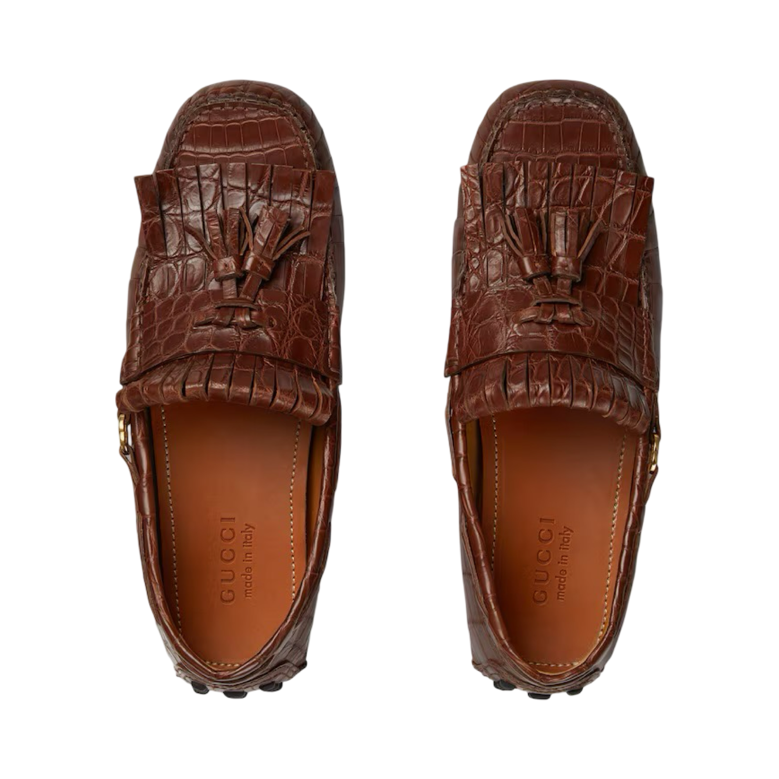 DETAILS: A reiteration of the classic style, the driver is presented in cuir crocodile with tassel details. Reflecting the intricate nature of the House’s designs, a miniature version of the Interlocking G adorns the side of the shoe.