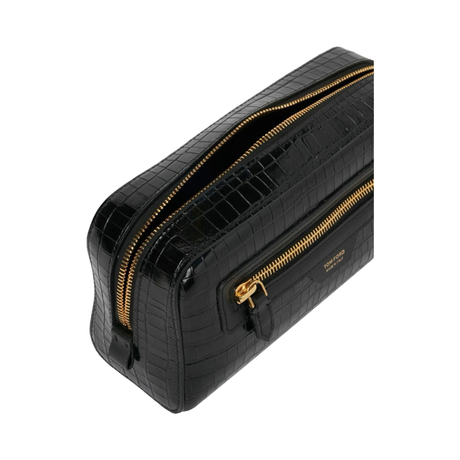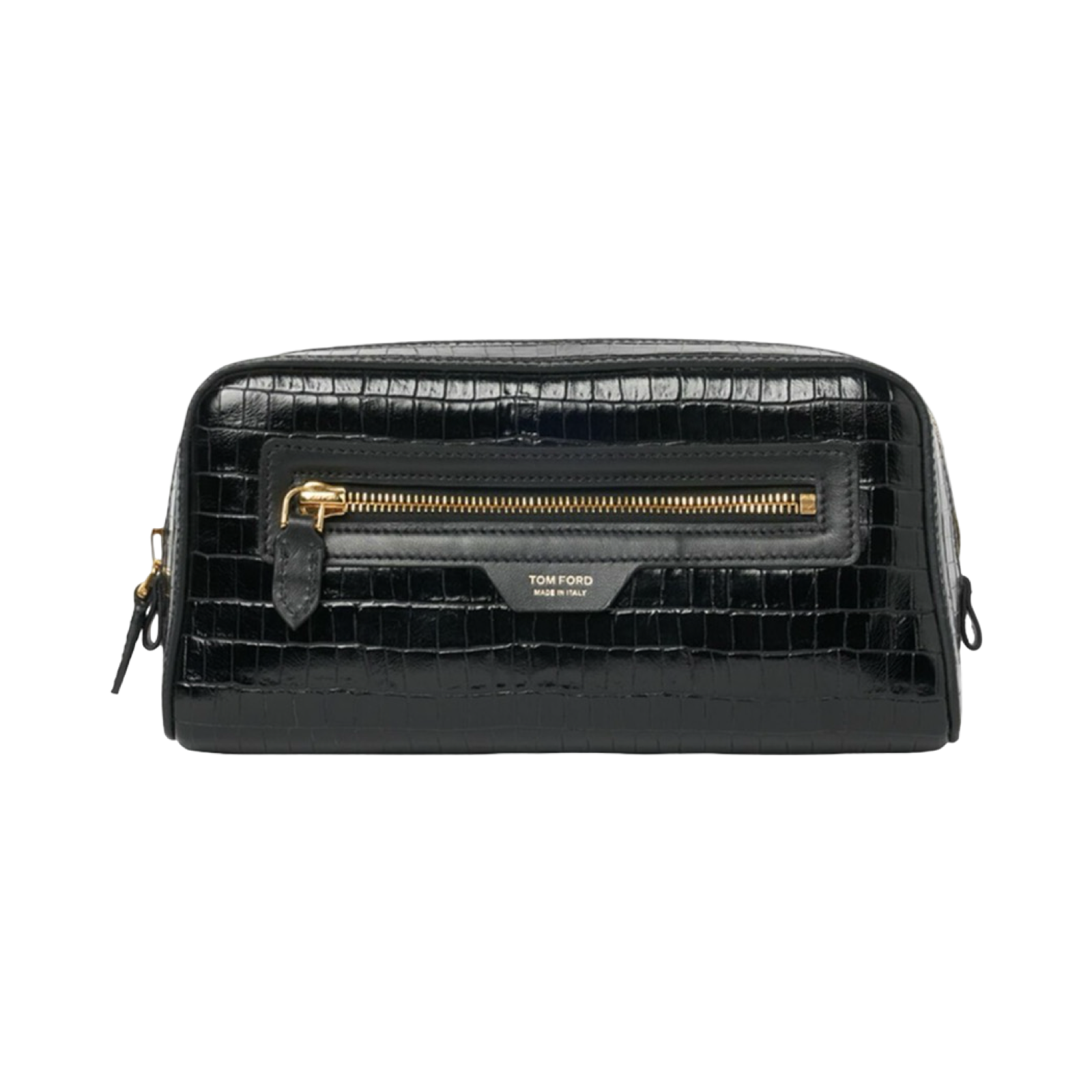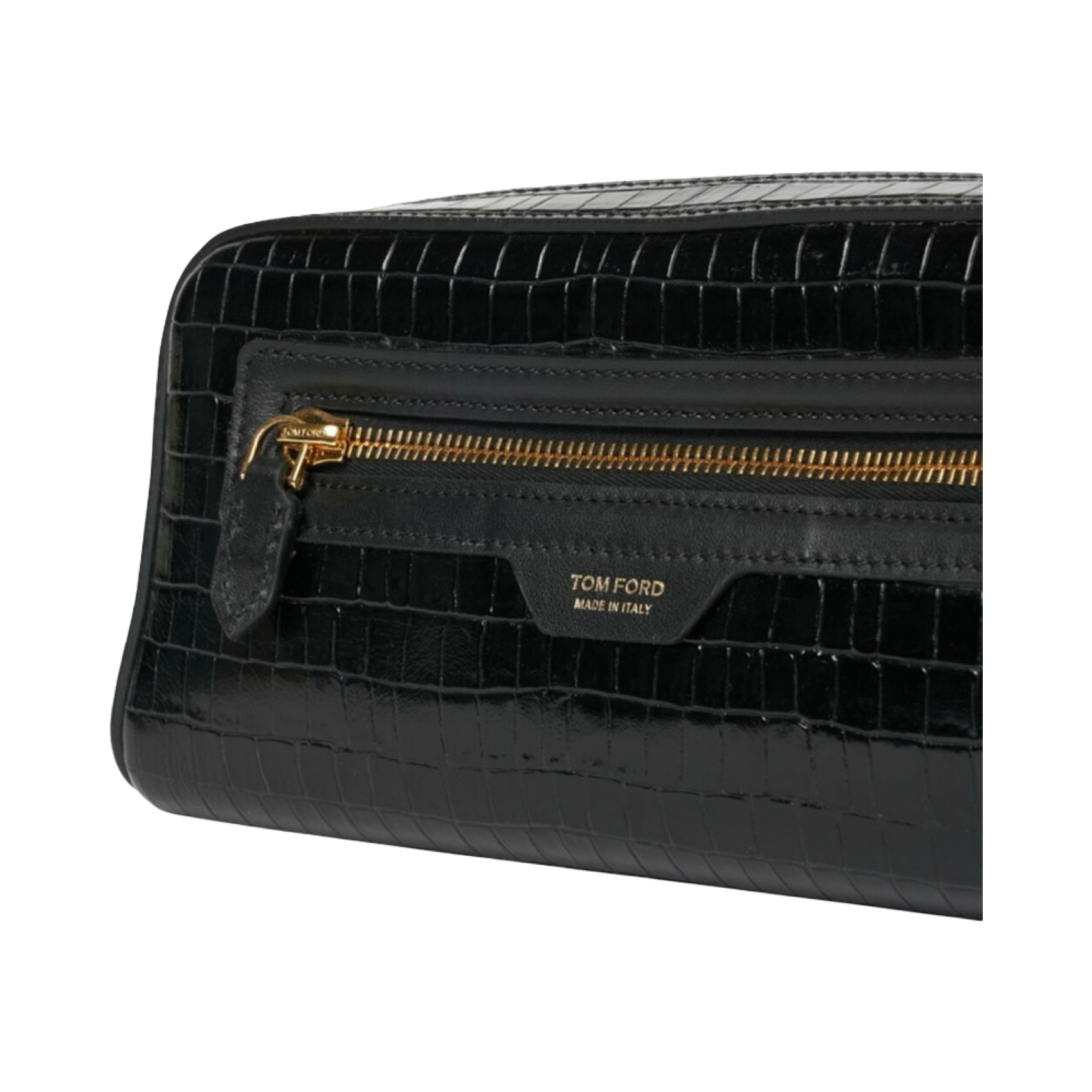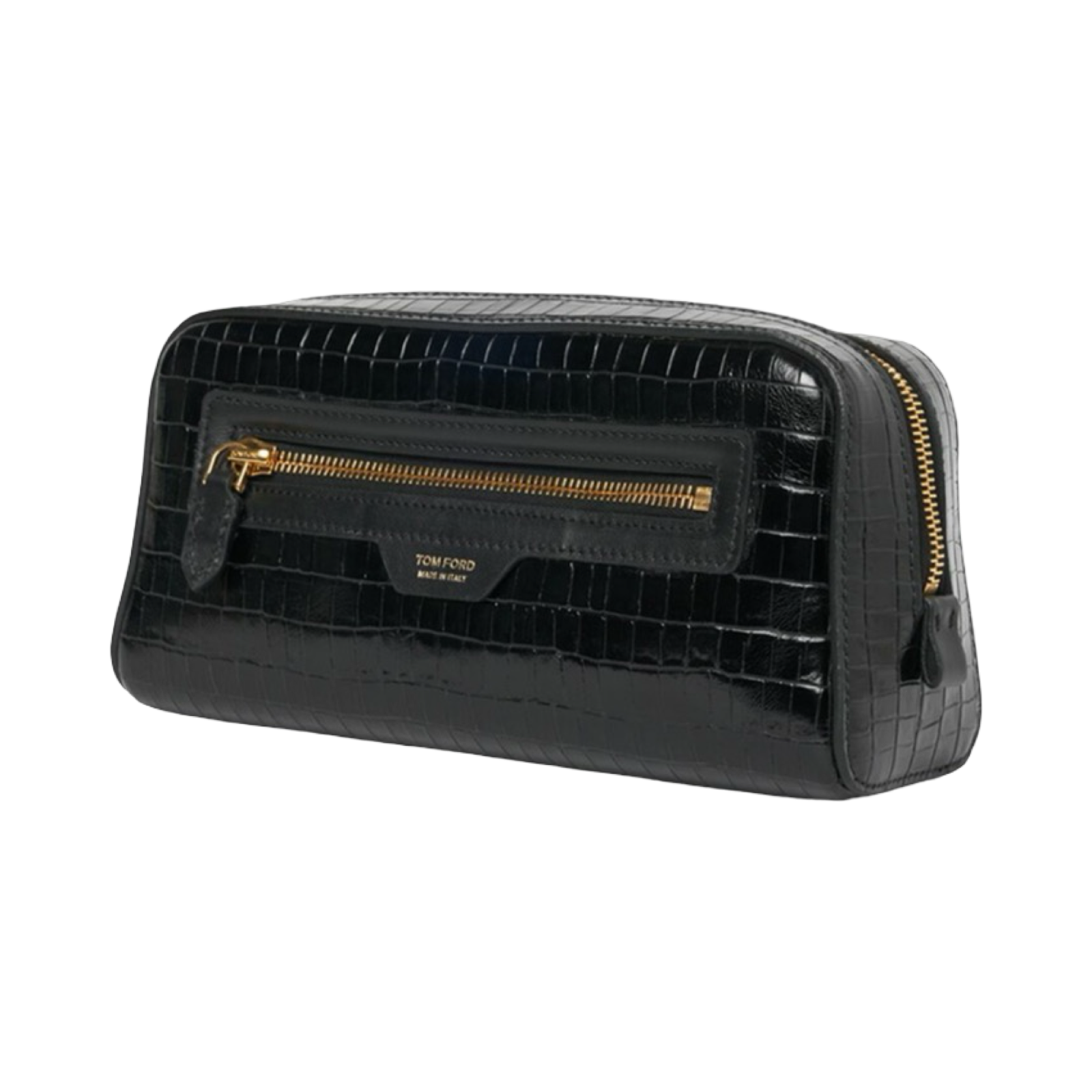 DETAILS: TOM FORD's smart wash bag will keep your toiletries neatly organised whether you're at home or away. It's crafted from glossy croc-effect leather and has external and internal pockets for securing smaller items.