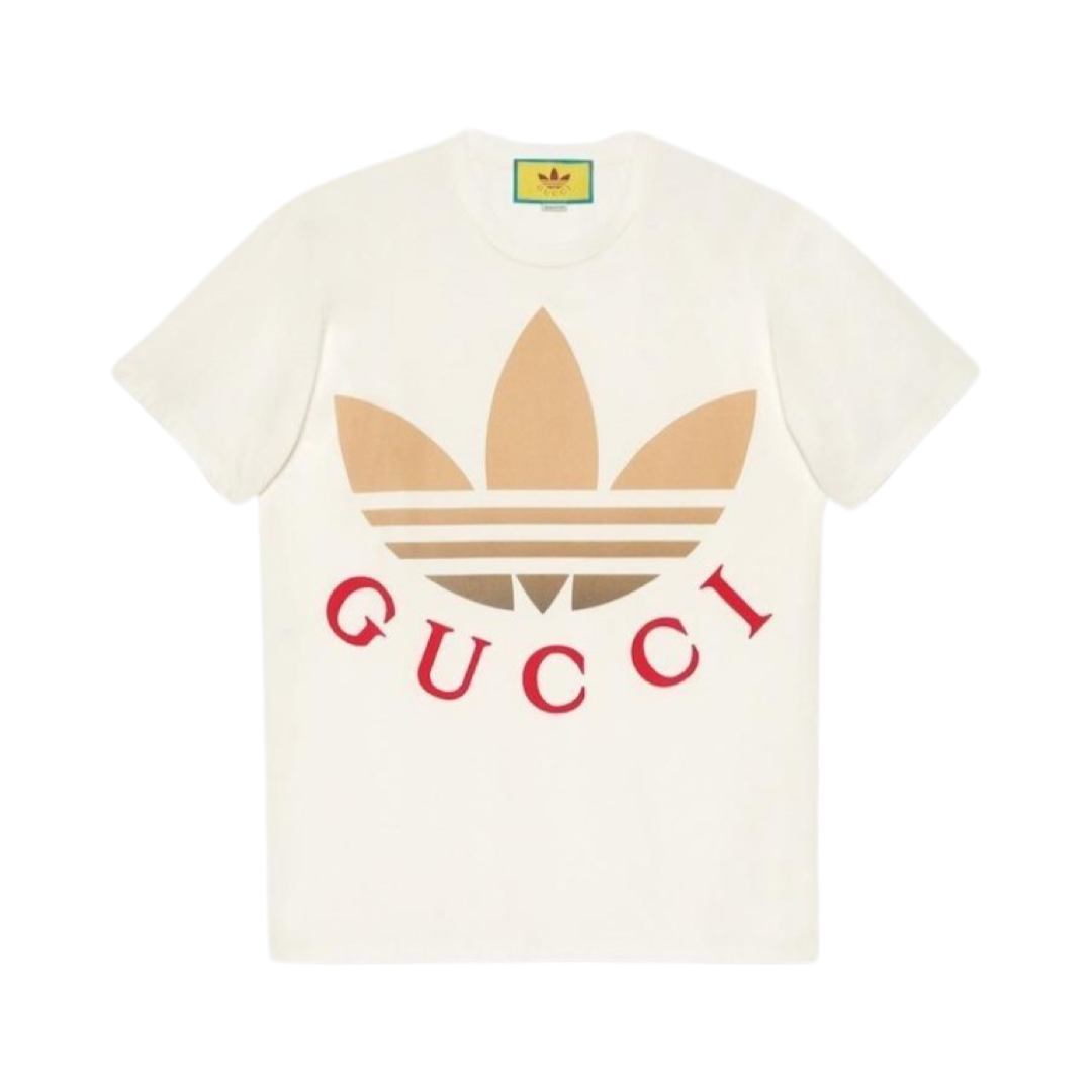 DETAILS: Gucci x Adidas T-shirt in white with a gradient logo. Loose fitting. Made in Italy.