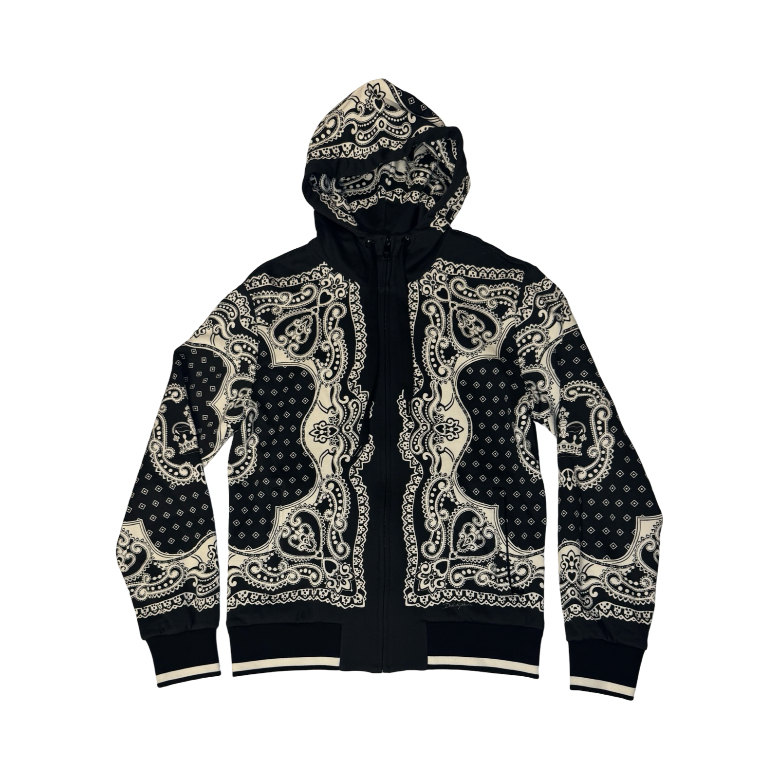 DETAILS: This D&G cotton jacket features bandana design, black zipper closure and pockets with subtle logo near the bottom above the ribbed cuffs. Made in Italy.