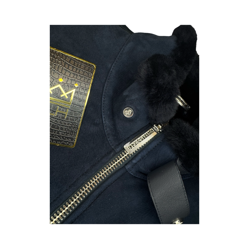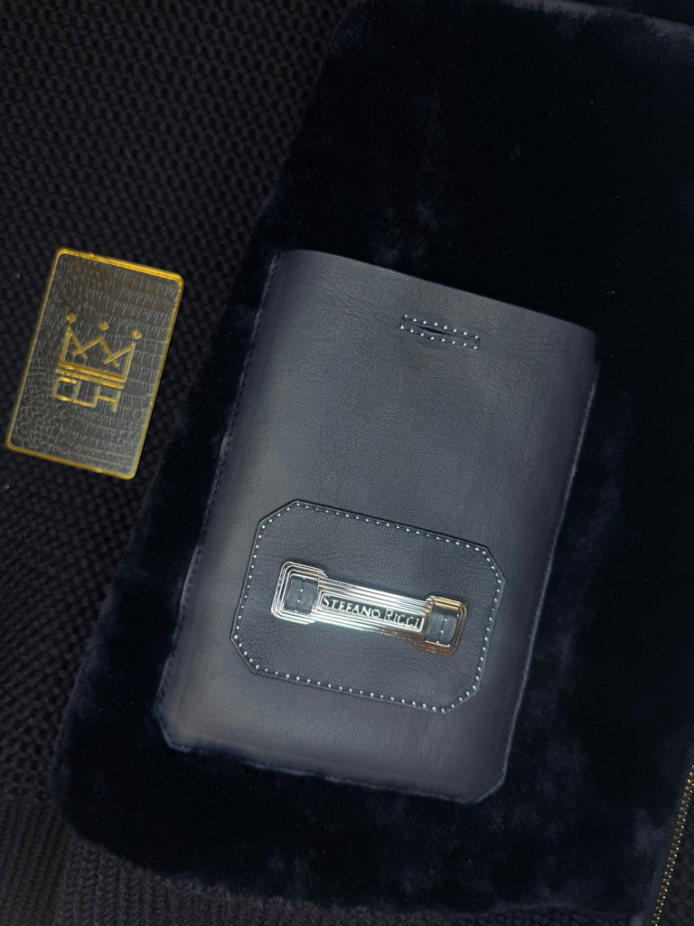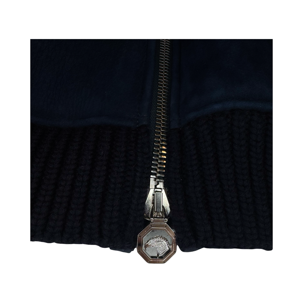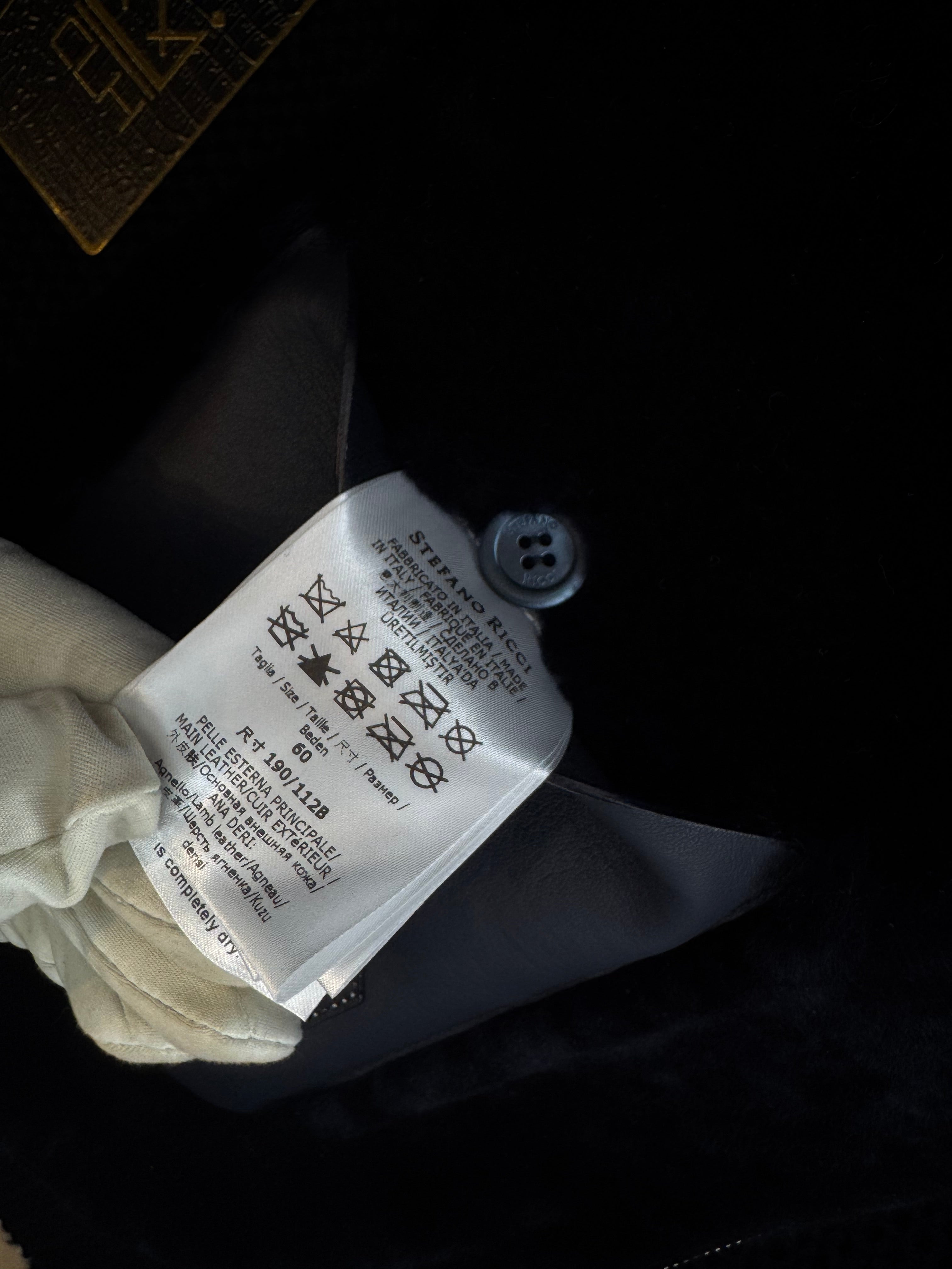 DETAILS: A masterclass in Italian craftsmanship, this Stefano Ricci jacket is meticulously crafted from supple lambskin and smooth suede, delivering both comfort and understated sophistication. The sleek zip-through design is accented with the house’s signature logo zipper pull, while a metal logo plaque adorns the back for a refined touch. Inside, the signature-embossed pocket adds a discreet mark of luxury. Rendered in a rich blue tone, this timeless jacket epitomizes the elegance and exclusivity synonymous with Stefano Ricci. Made in Italy.