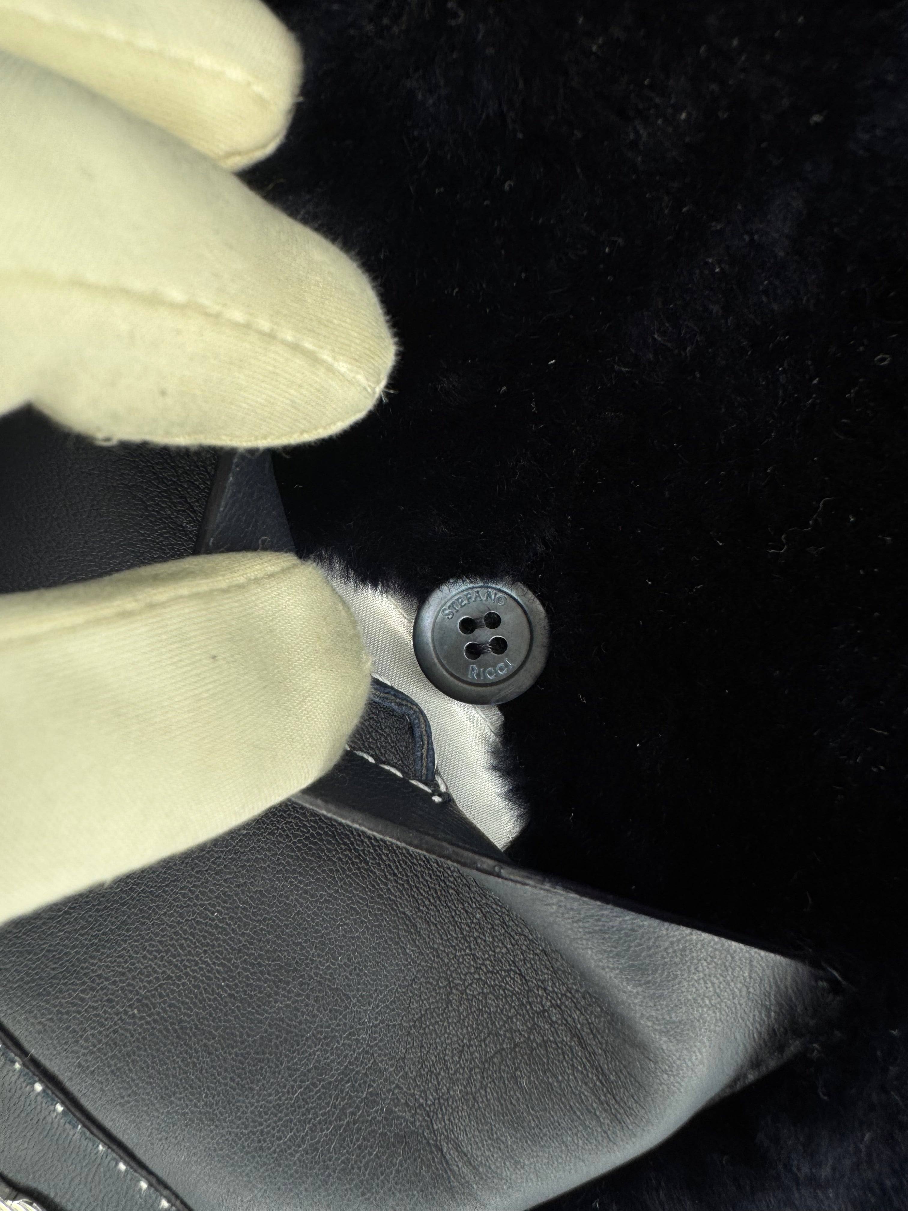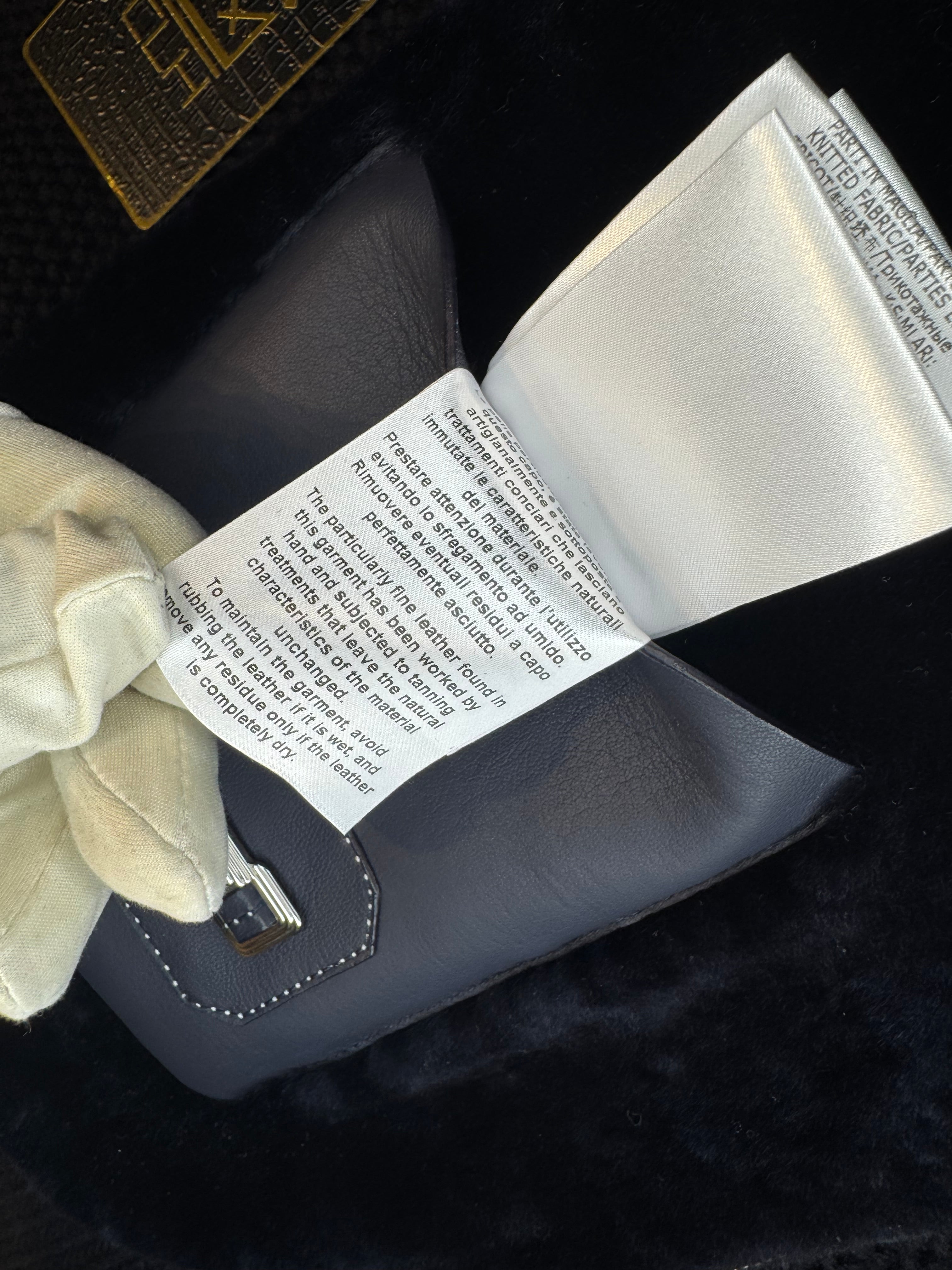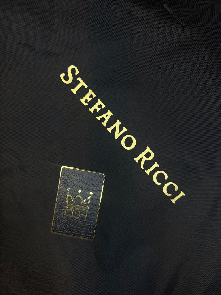 DETAILS: A masterclass in Italian craftsmanship, this Stefano Ricci jacket is meticulously crafted from supple lambskin and smooth suede, delivering both comfort and understated sophistication. The sleek zip-through design is accented with the house’s signature logo zipper pull, while a metal logo plaque adorns the back for a refined touch. Inside, the signature-embossed pocket adds a discreet mark of luxury. Rendered in a rich blue tone, this timeless jacket epitomizes the elegance and exclusivity synonymous with Stefano Ricci. Made in Italy.
