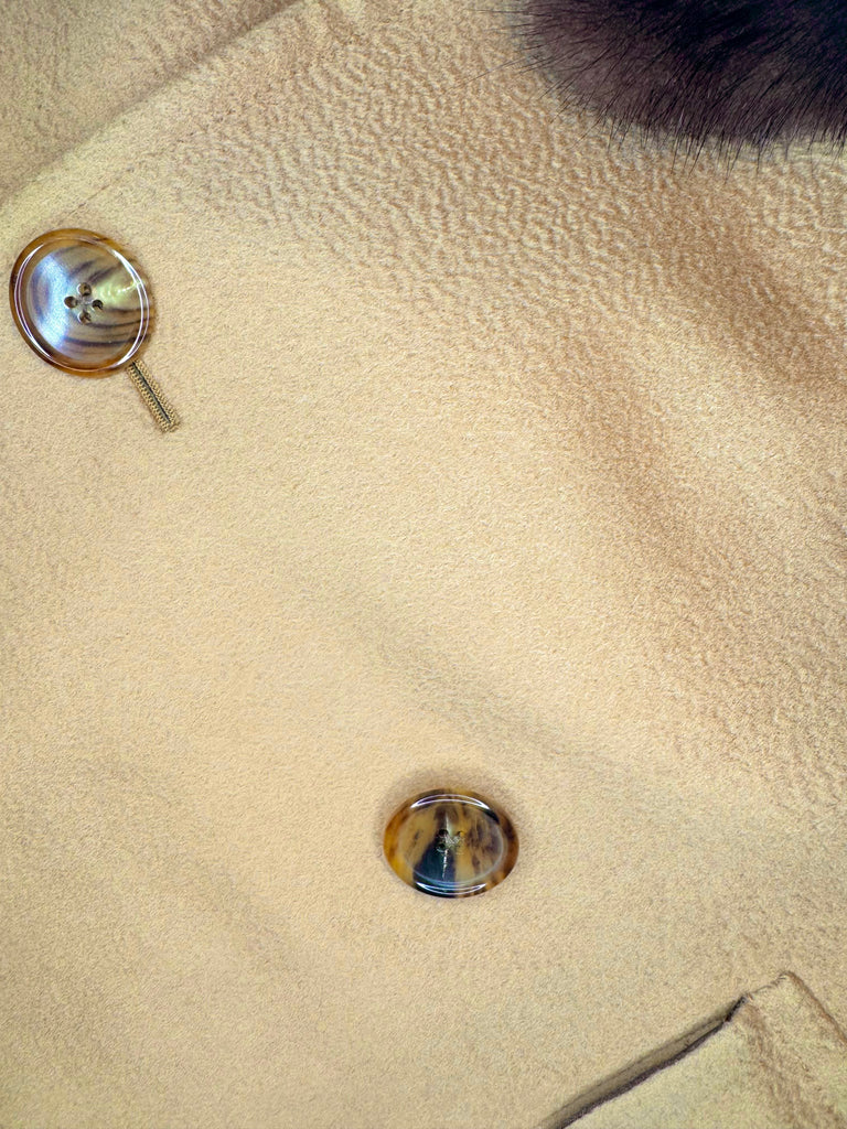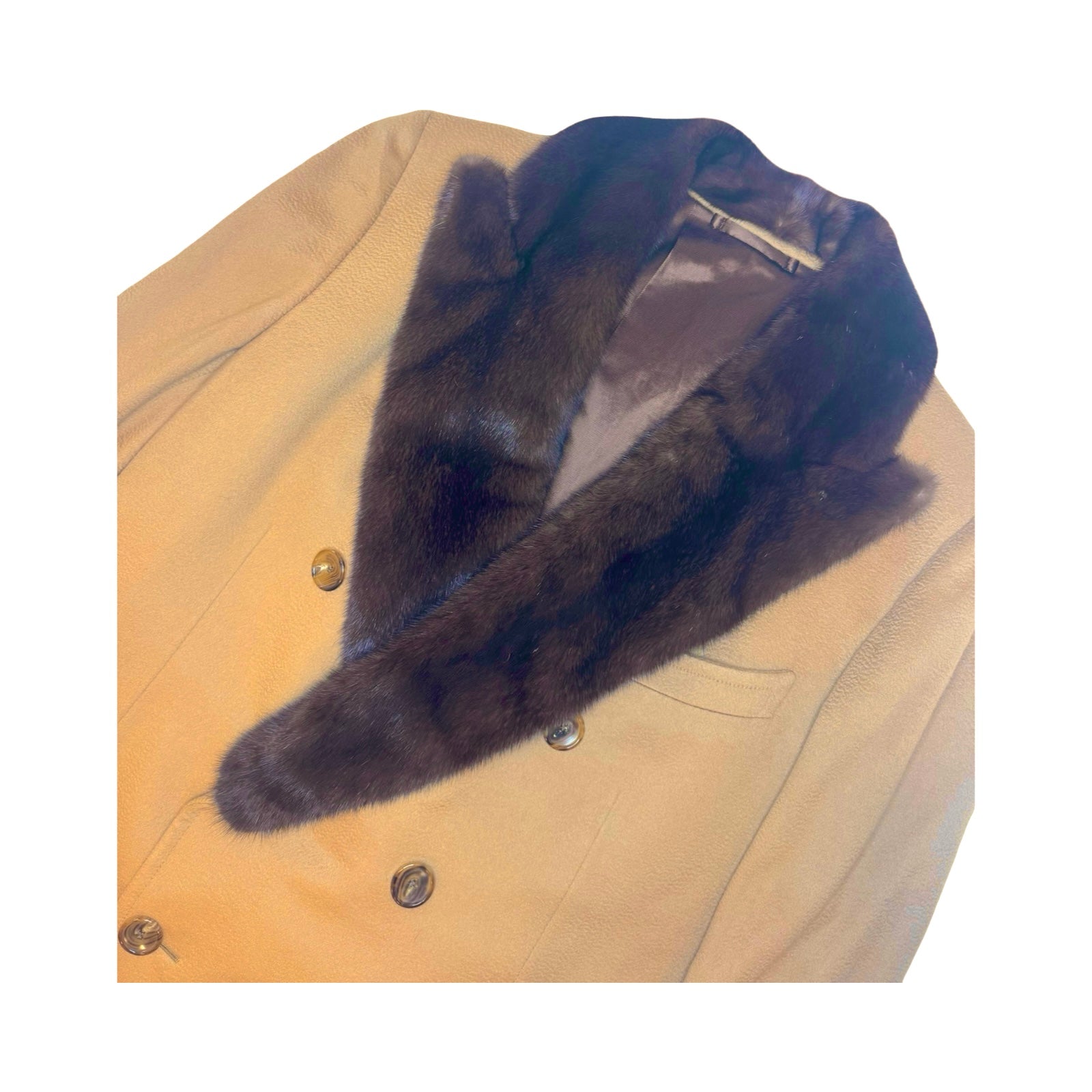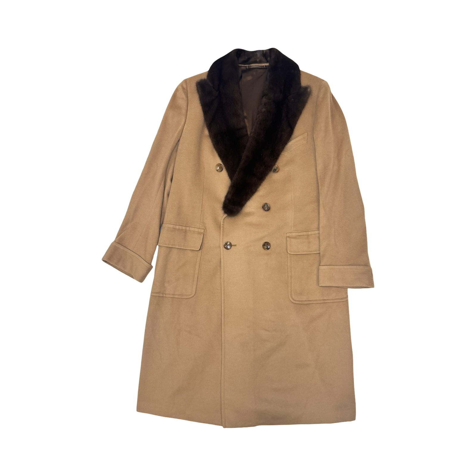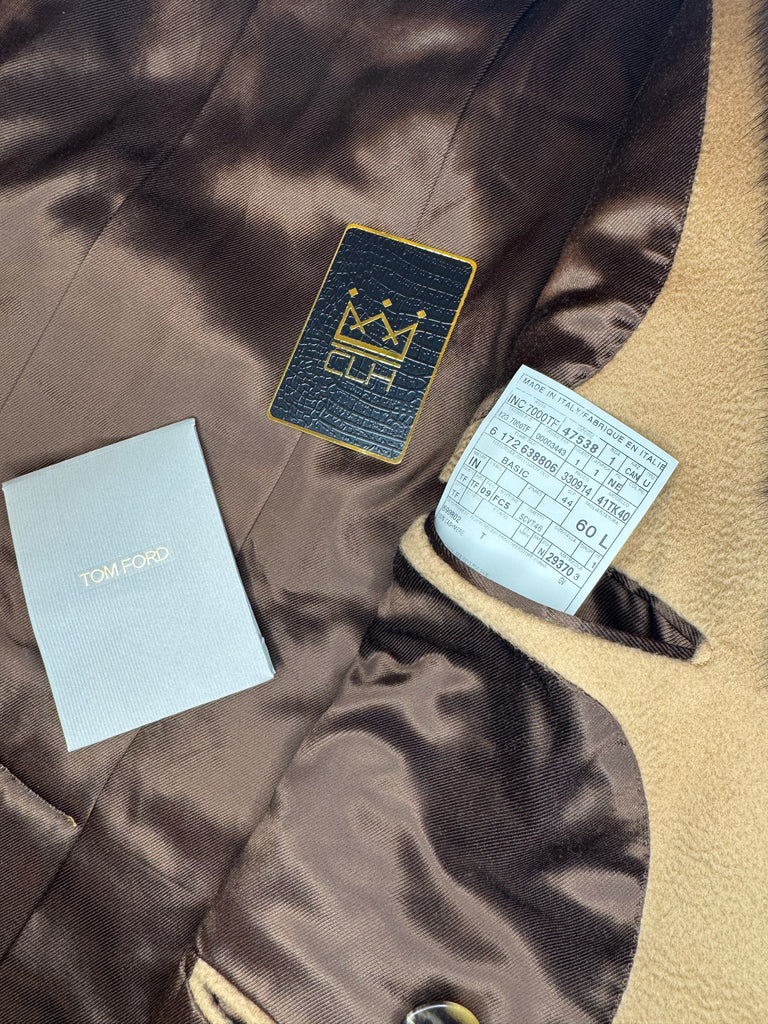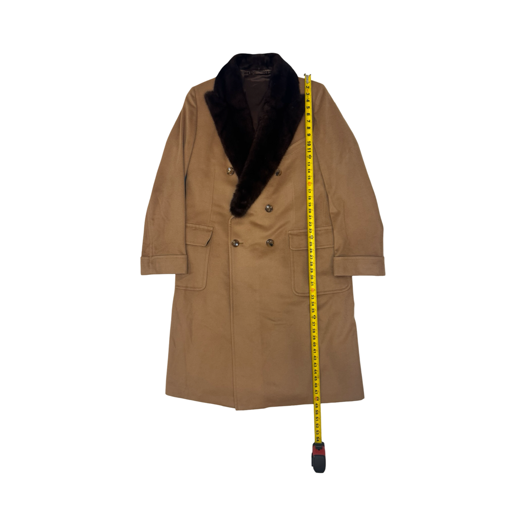 DETAILS: A true statement of sophistication, this Tom Ford jacket is expertly tailored from tanned cashmere and features a double-breasted silhouette that exudes timeless elegance. The design is elevated by a sumptuous mink fur collar, adding a touch of opulence and warmth. Finished with a silky satin lining for effortless comfort and refined structure, this piece embodies Tom Ford’s signature balance of luxury, power, and impeccable craftsmanship. Made in Italy.