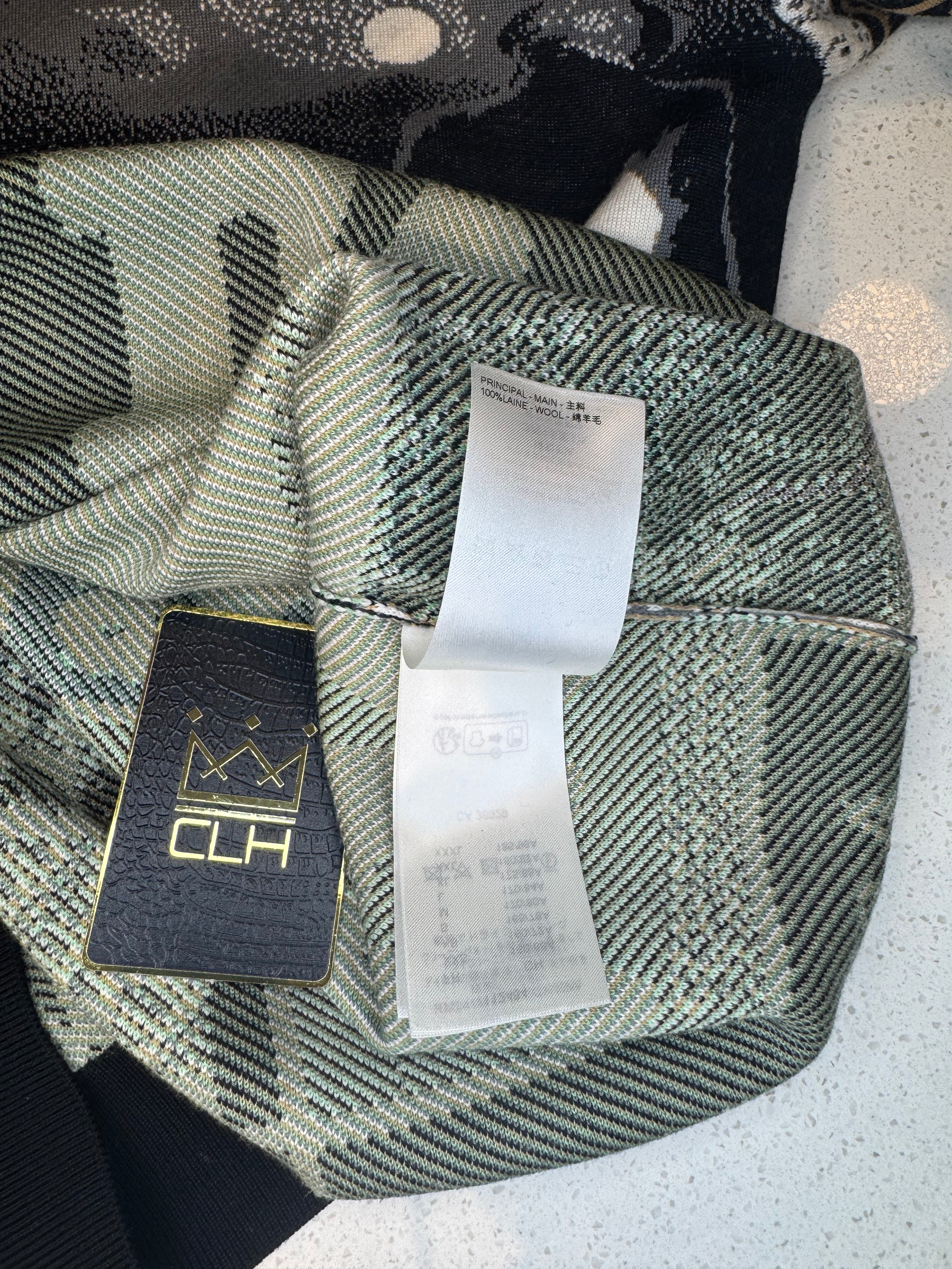 DETAILS: This sweatshirt offers a collage of graphics for unique look. 100% wool. Made in Italy.