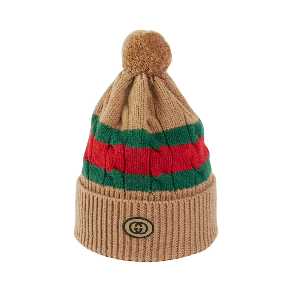 GUCCI WOOL KNIT HAT WITH WEB STRIPE
