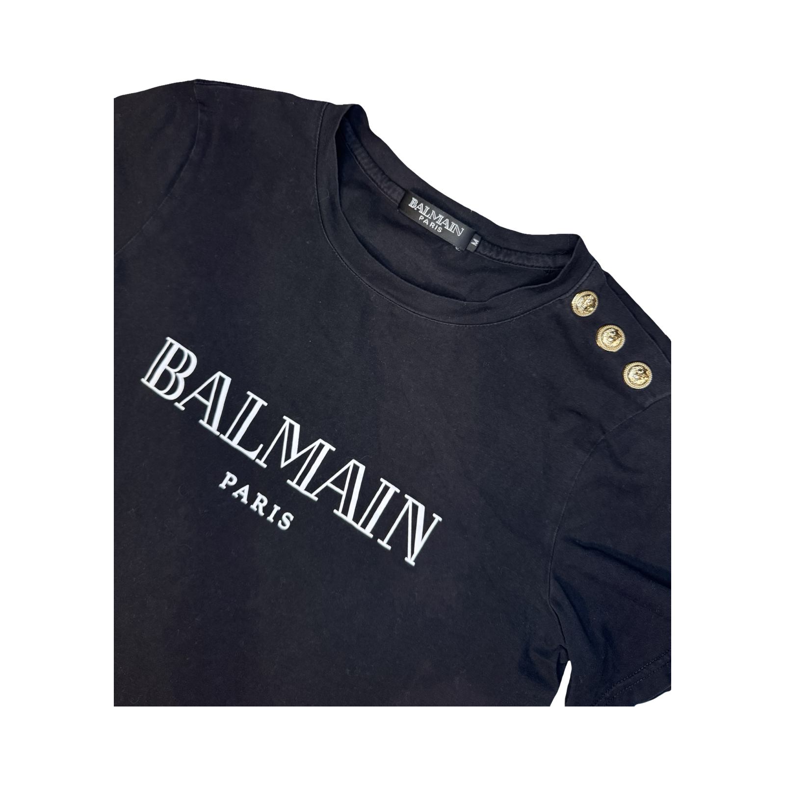 DETAILS: Short sleeve cotton jersey t-shirt in black with white logo.
