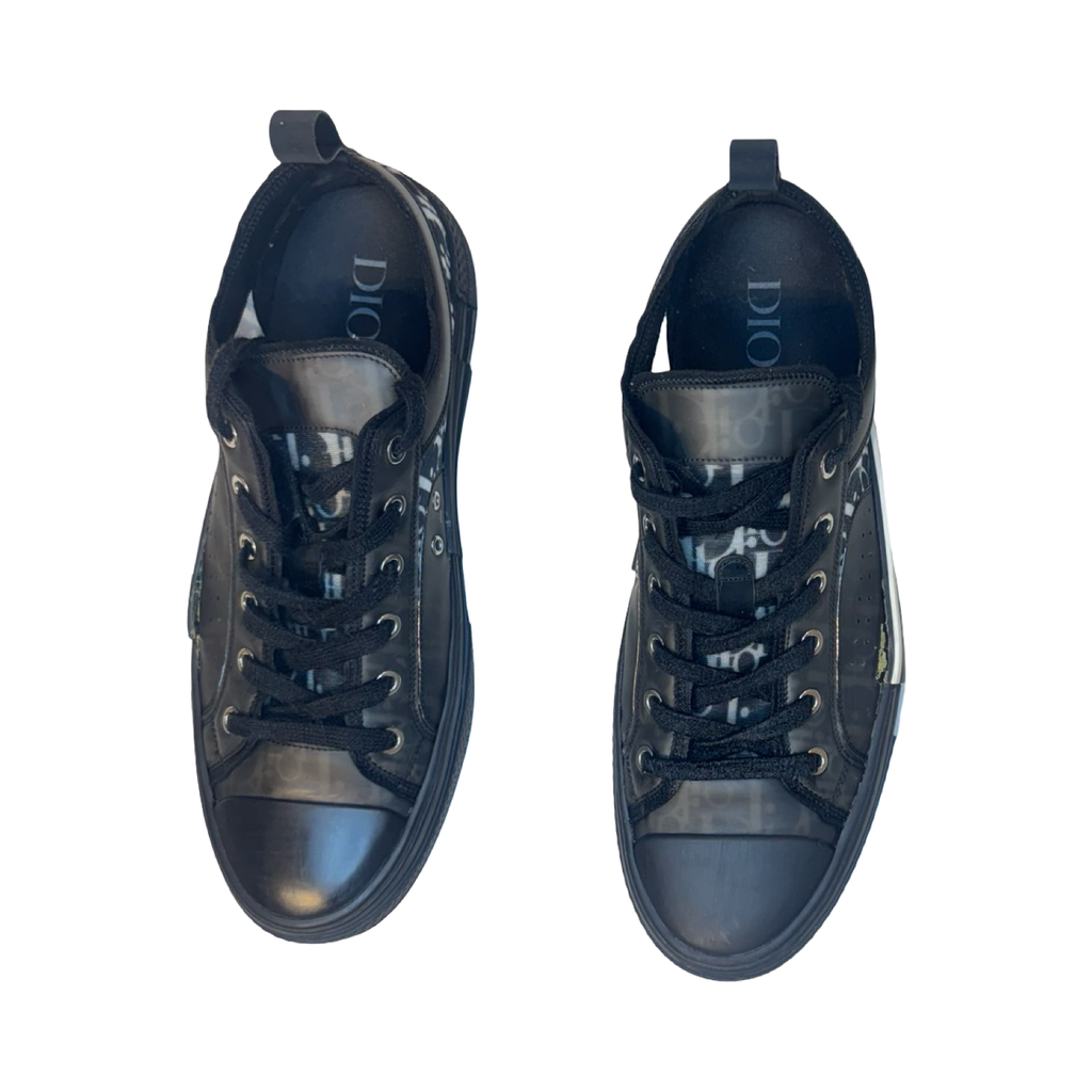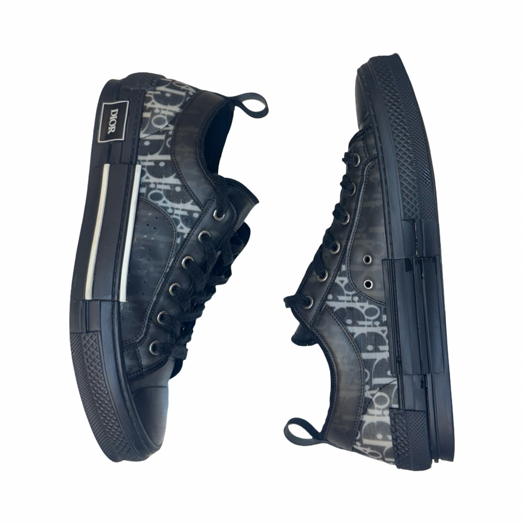 DETAILS: The B23 low-top sneaker is set apart by its layering of transparent paneling and white and yellow Dior Oblique canvas. Essential details, such as eyelets and a lace-up front, a white rubber sole, a rounded and reinforced toe as well as a rear tab recall the codes of the classic low-top style. The sneaker is further enhanced with contrasting details on the sides, including a 'DIOR' signature, and pairs easily with any casual outfit.