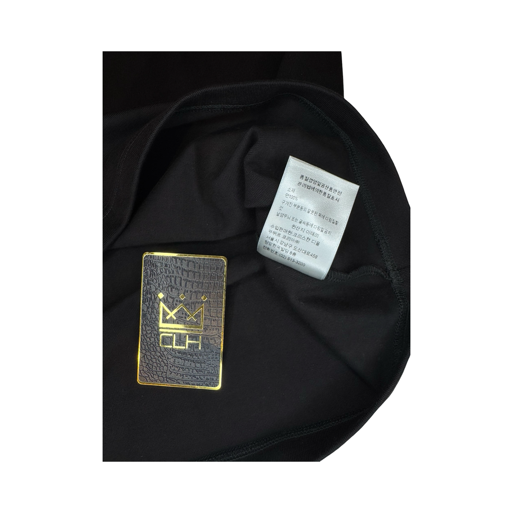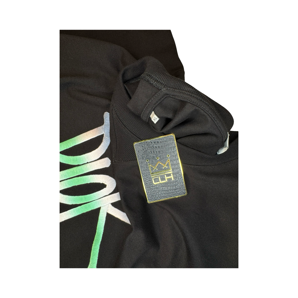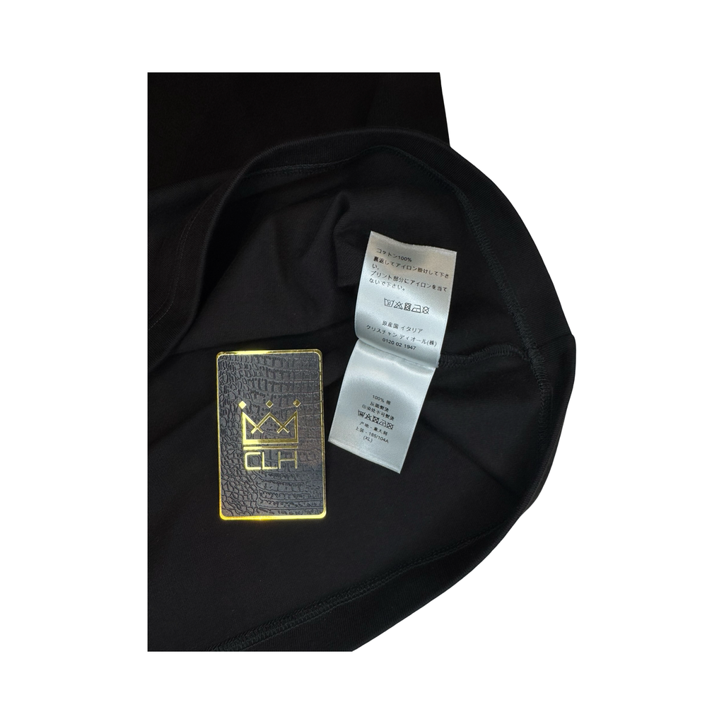 DETAILS: This Dior x Shawn Stussy collab offers Rib knit collar short sleeve tee in black. Item features signature logo embroidered at front chest in green gradient. Made of cotton. Relaxed fit. Made in Italy.
