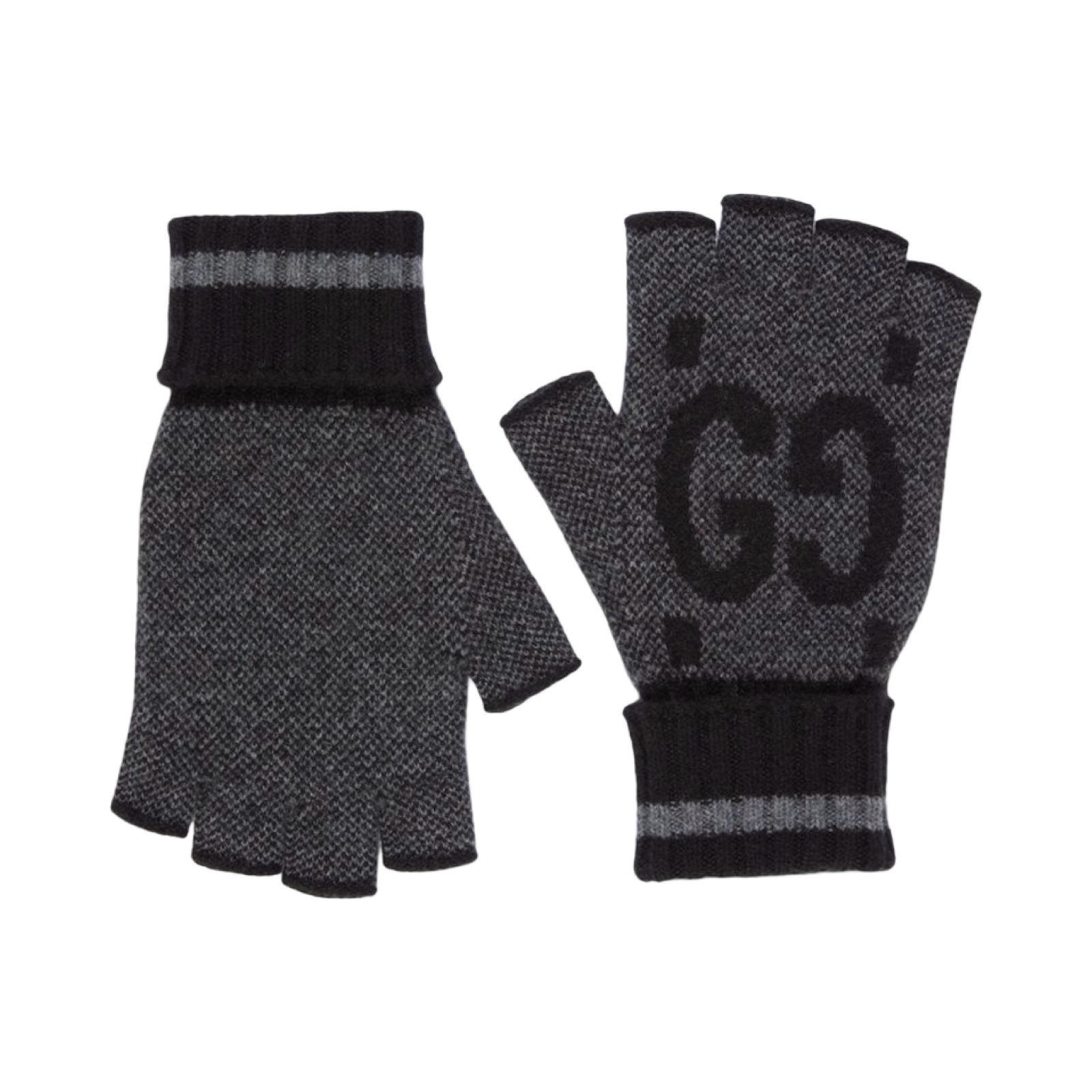 DETAILS: Elevate your winter style with these luxurious Gucci fingerless gloves, crafted from 100% cashmere in soft shades of pink and grey. Featuring ribbed cuffs and the iconic GG intarsia logo at the front, they combine comfort, warmth, and timeless design. Perfect for keeping cozy while staying chic.