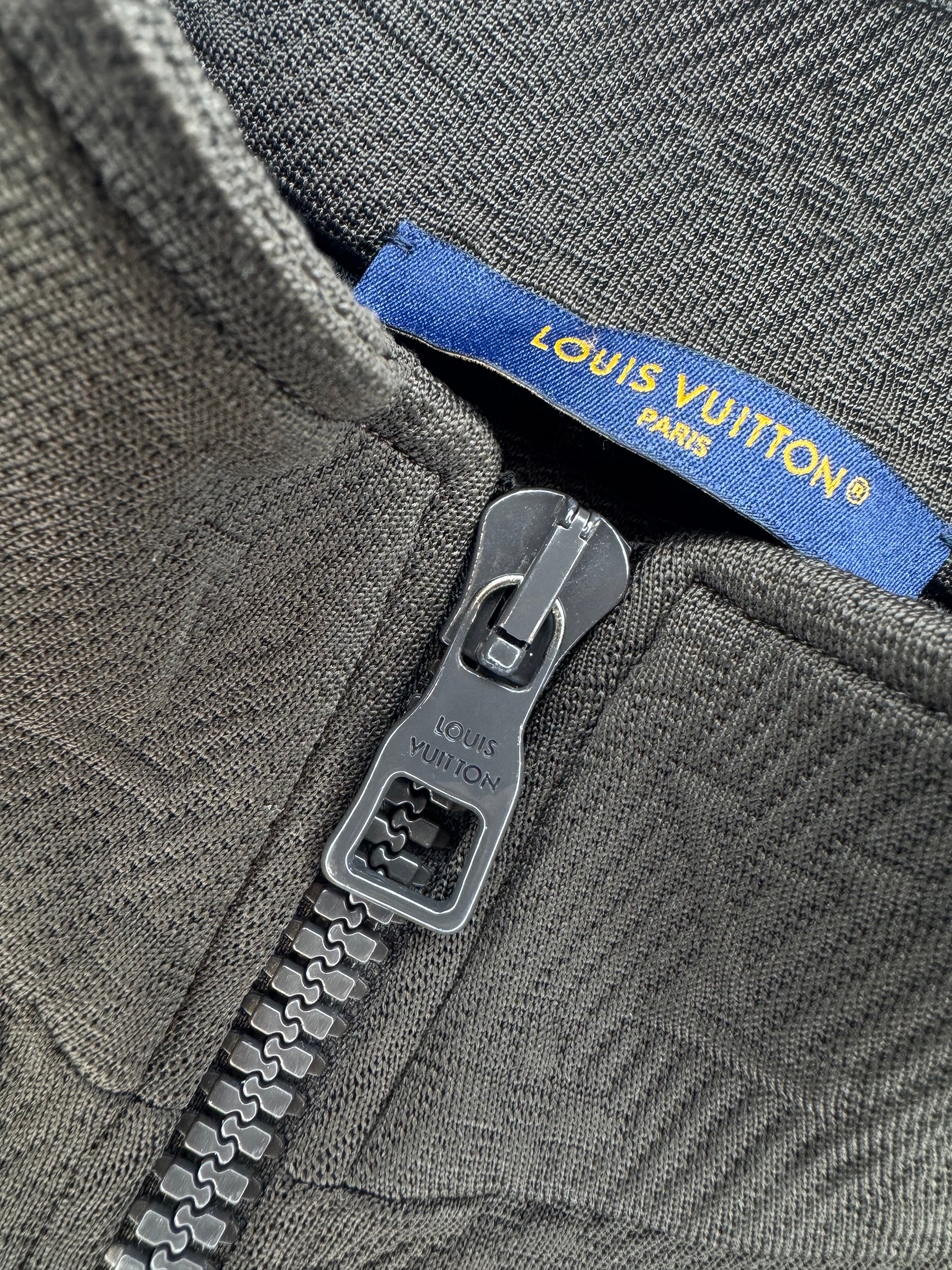 DETAILS: This Monogram Zip Through Top injects iconic Louis Vuitton branding into a classic casual piece. Crafted from technical fabric with a discrete textured Monogram effect, it features a full-length zip at the front and two zipped front pockets. The collection’s signature staple at the back adds to the branded vibe.