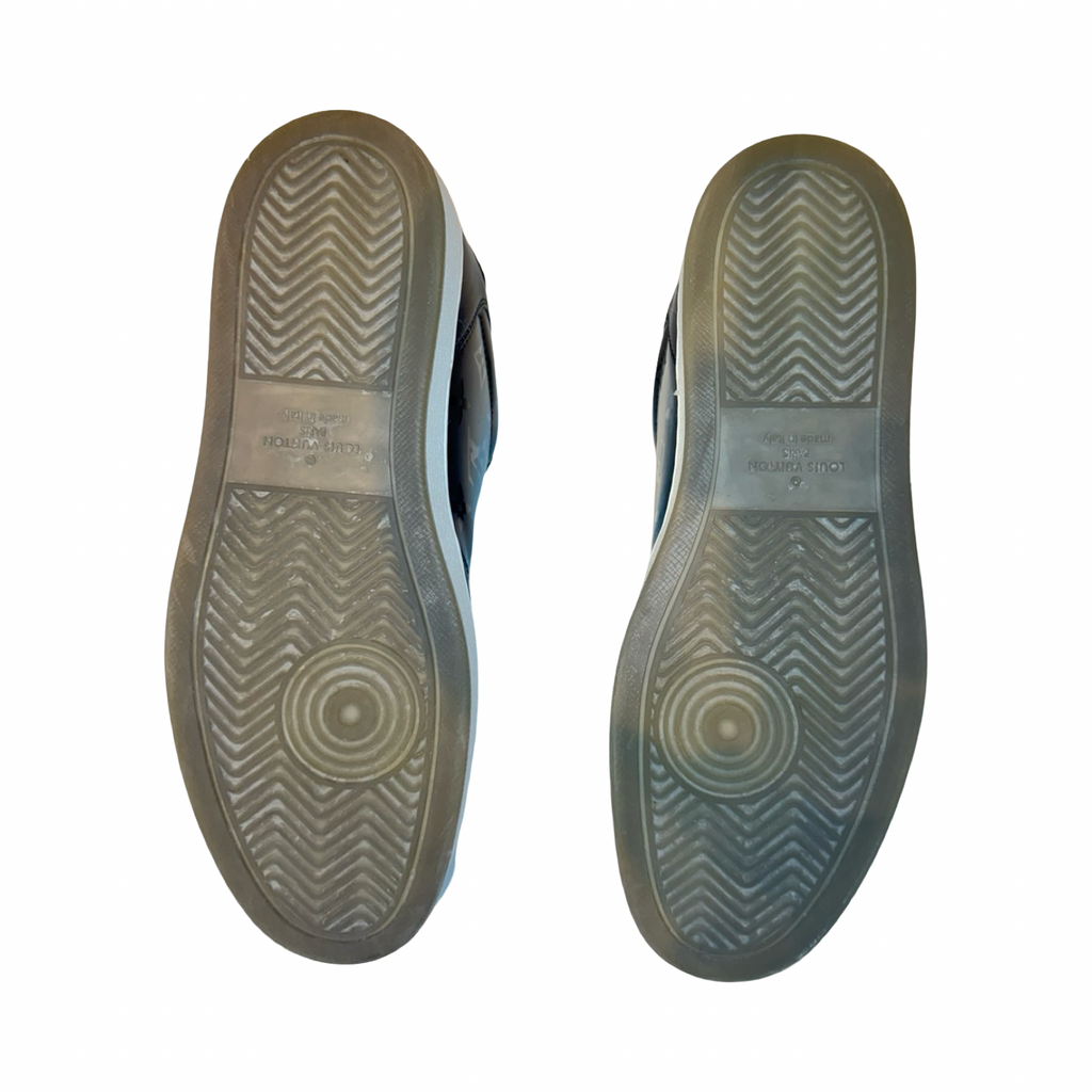 DETAILS: Louis Vuitton Luxembourg sneaker that features a reflective monogram throughout. Leather throughout and this combination is extremely rare. Made in Italy.