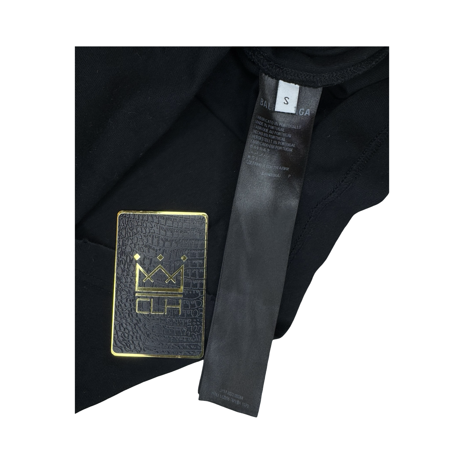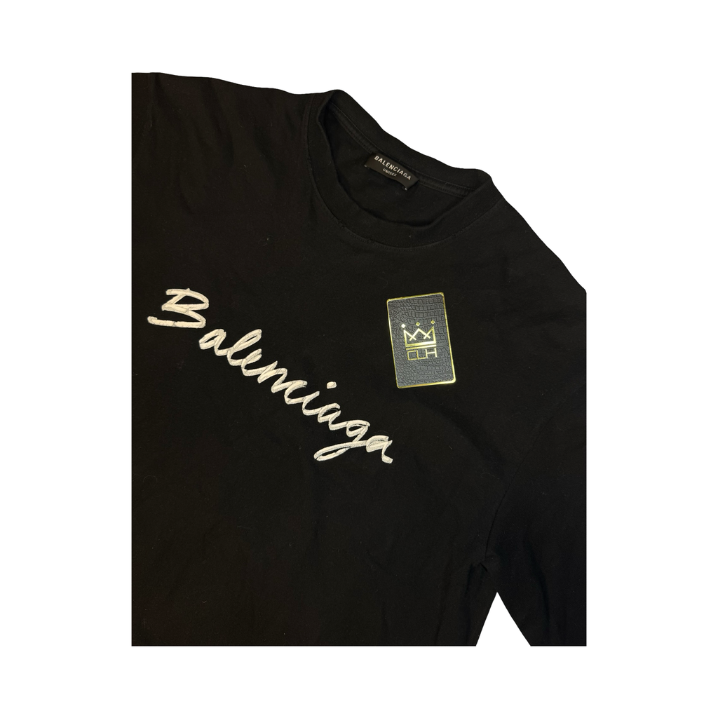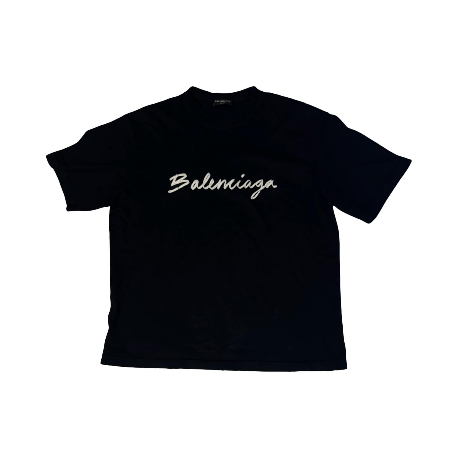 DETAILS: Black logo shirt from Balenciaga. Made of Natural fiber and breathable cotton. 3D logo on front. Oversized fit.