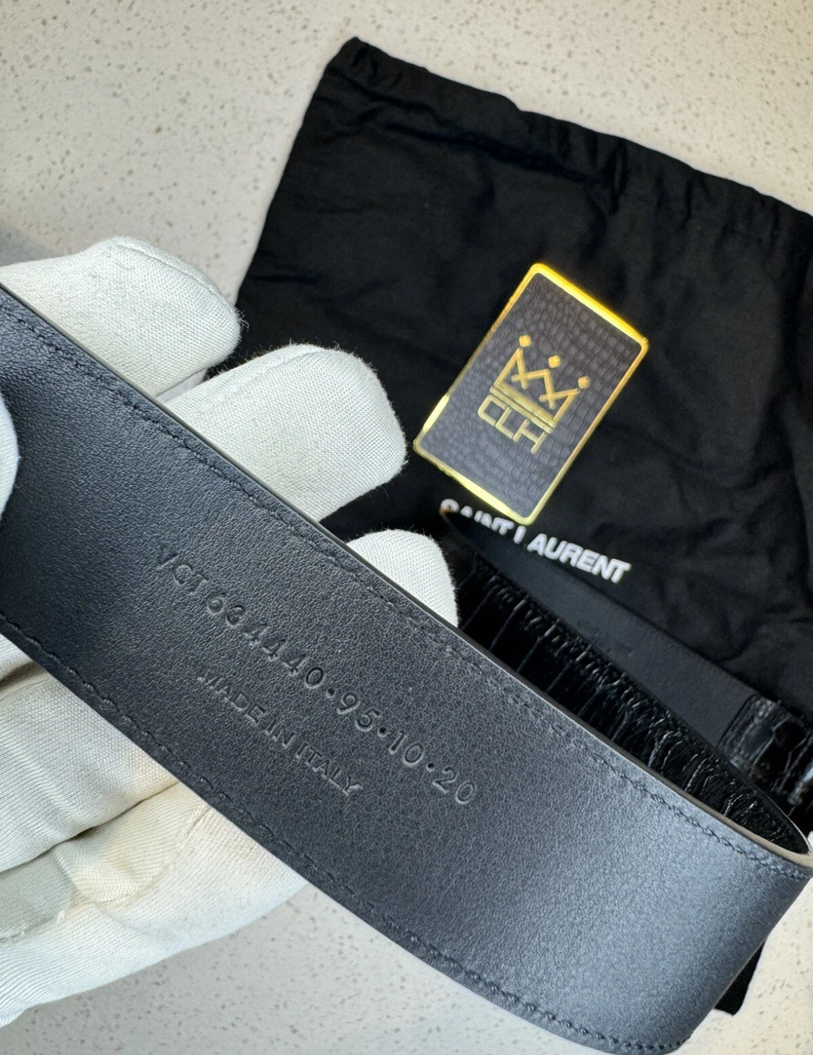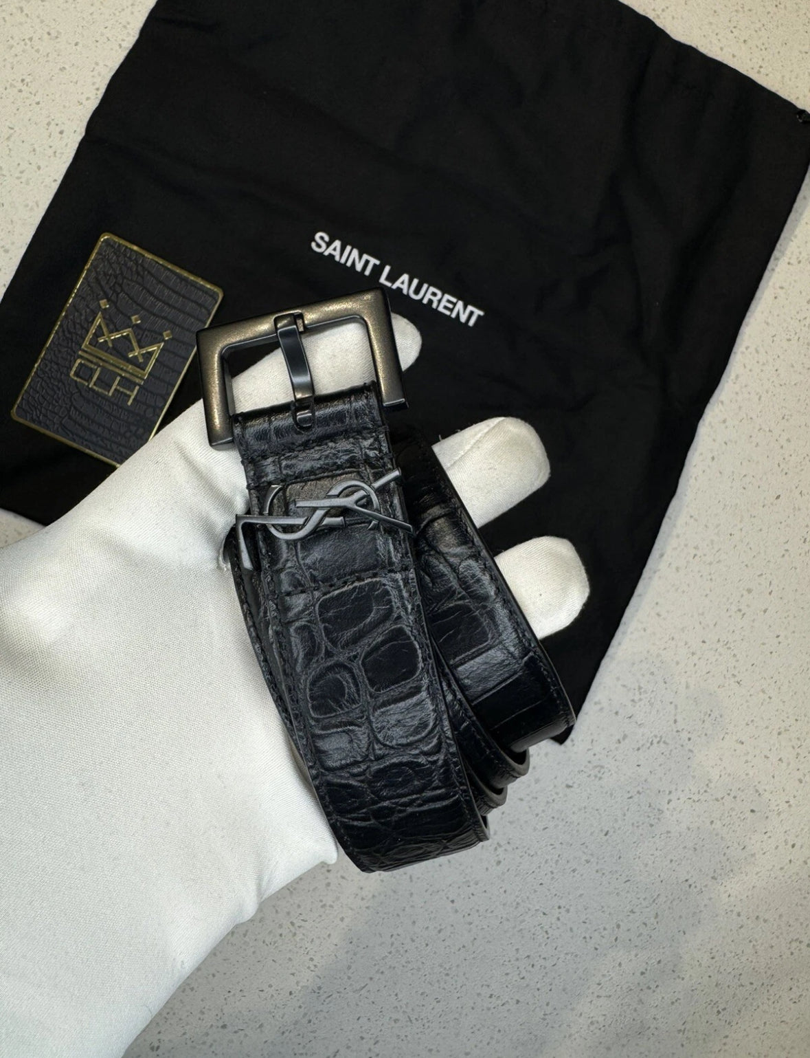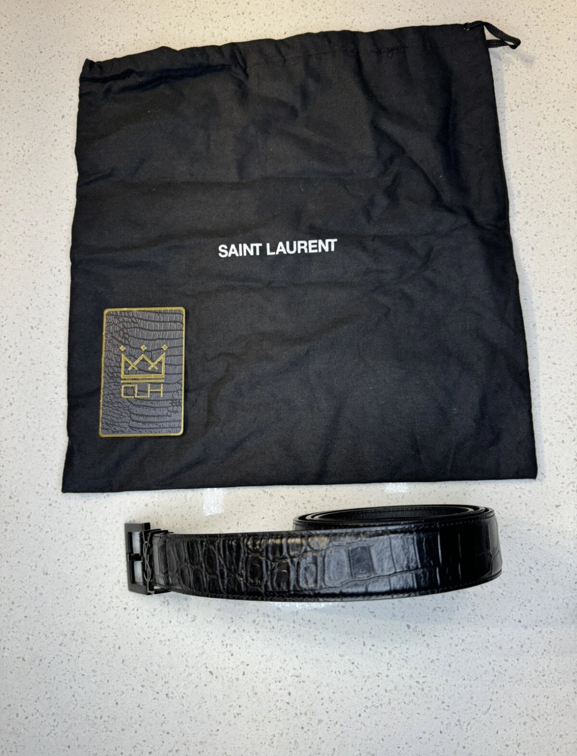 SAINT LAURENT (YSL) CROC MONOGRAM BELT