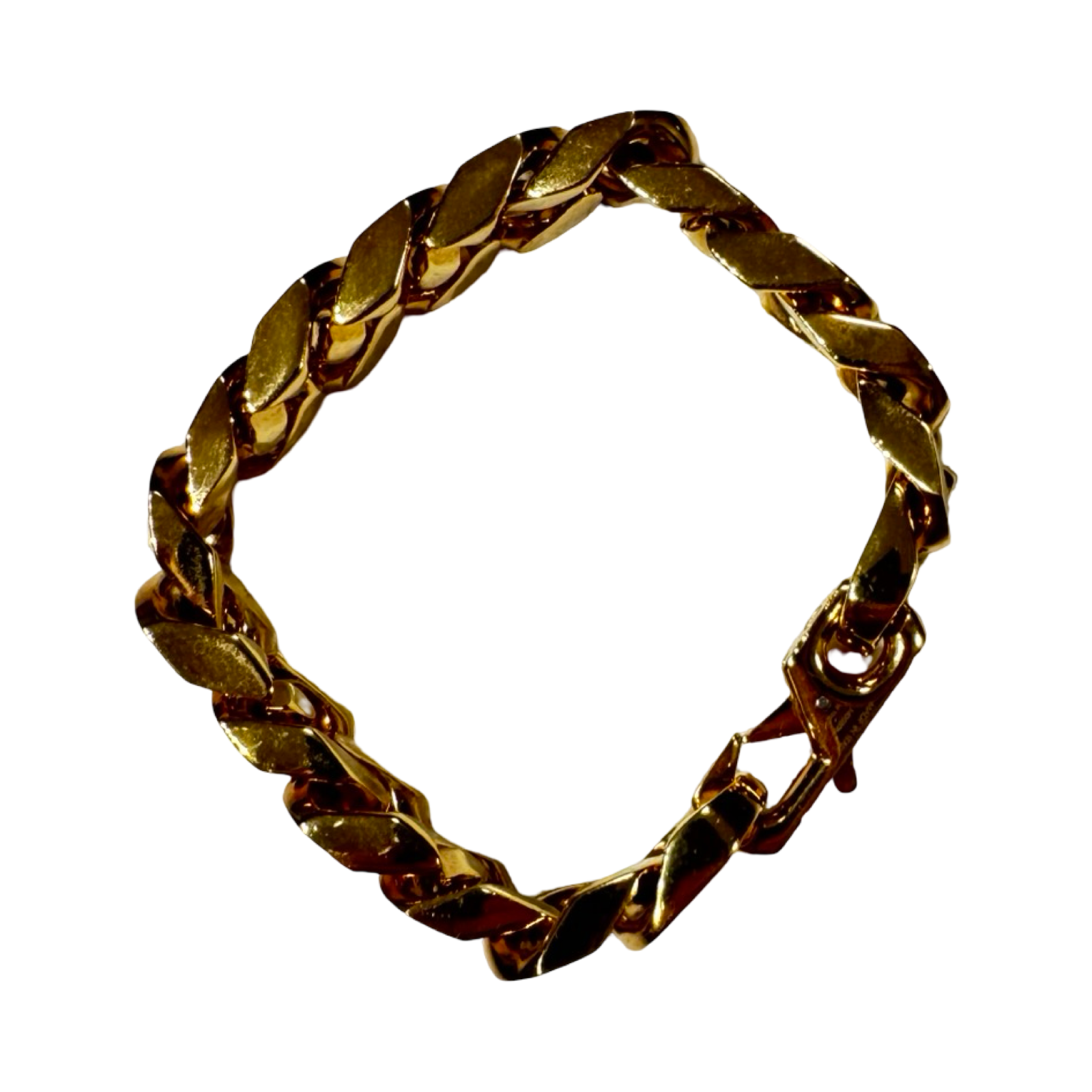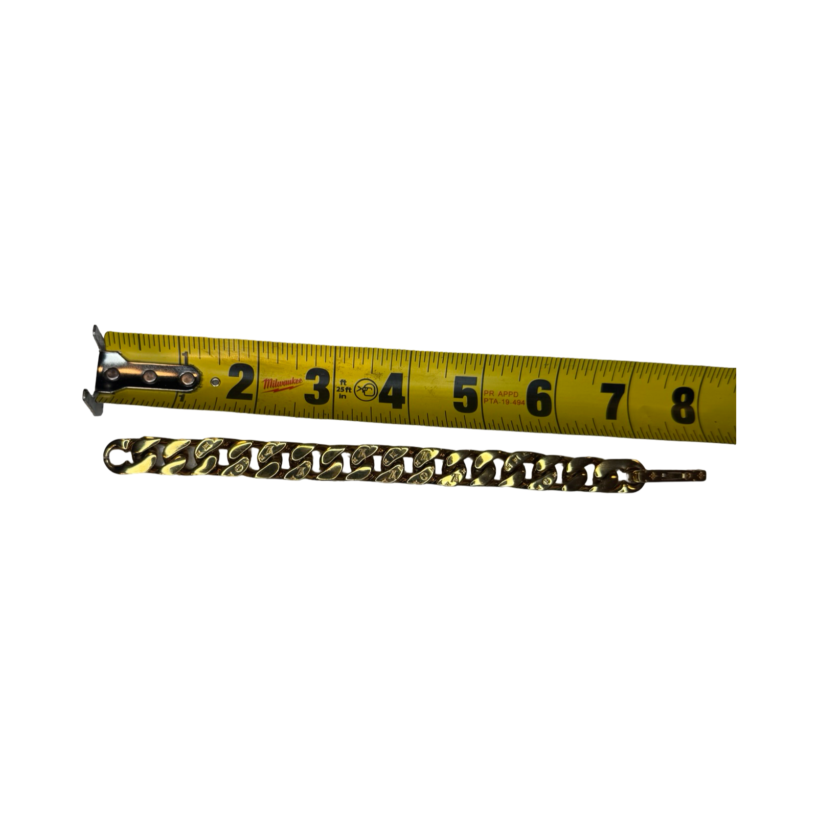 DETAILS: The Monogram cuban link bracelet offer engraved monogram throughout. It is now discontinued. Finished in Gold Plated on Brass. Made in Italy