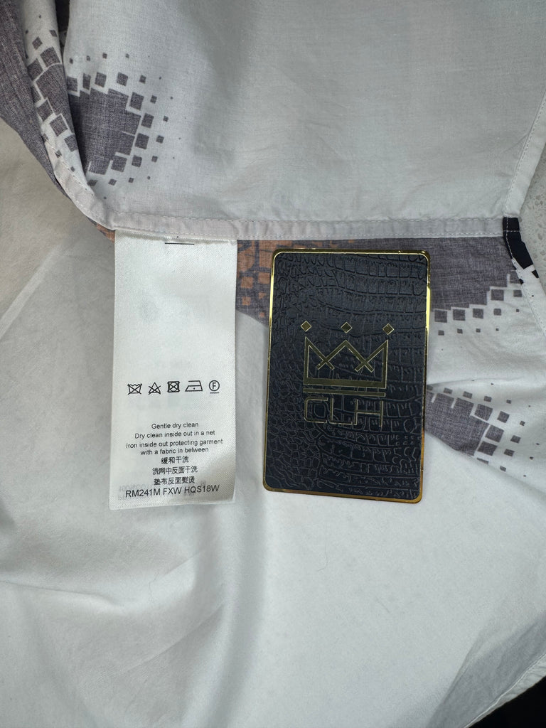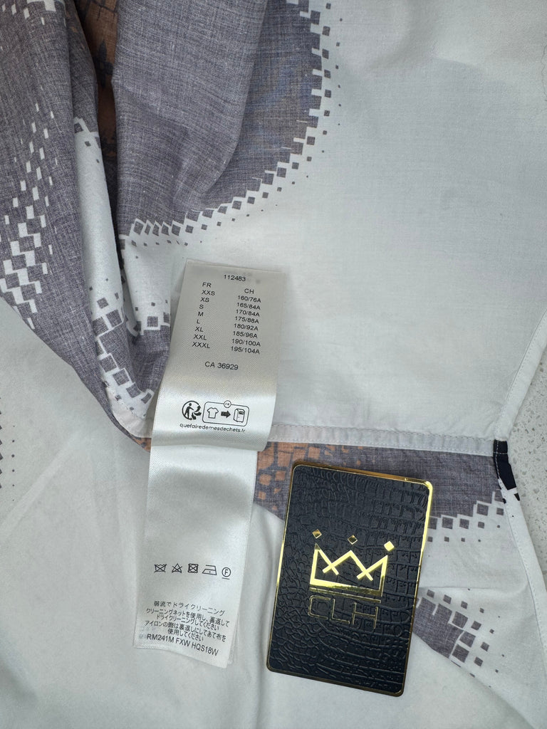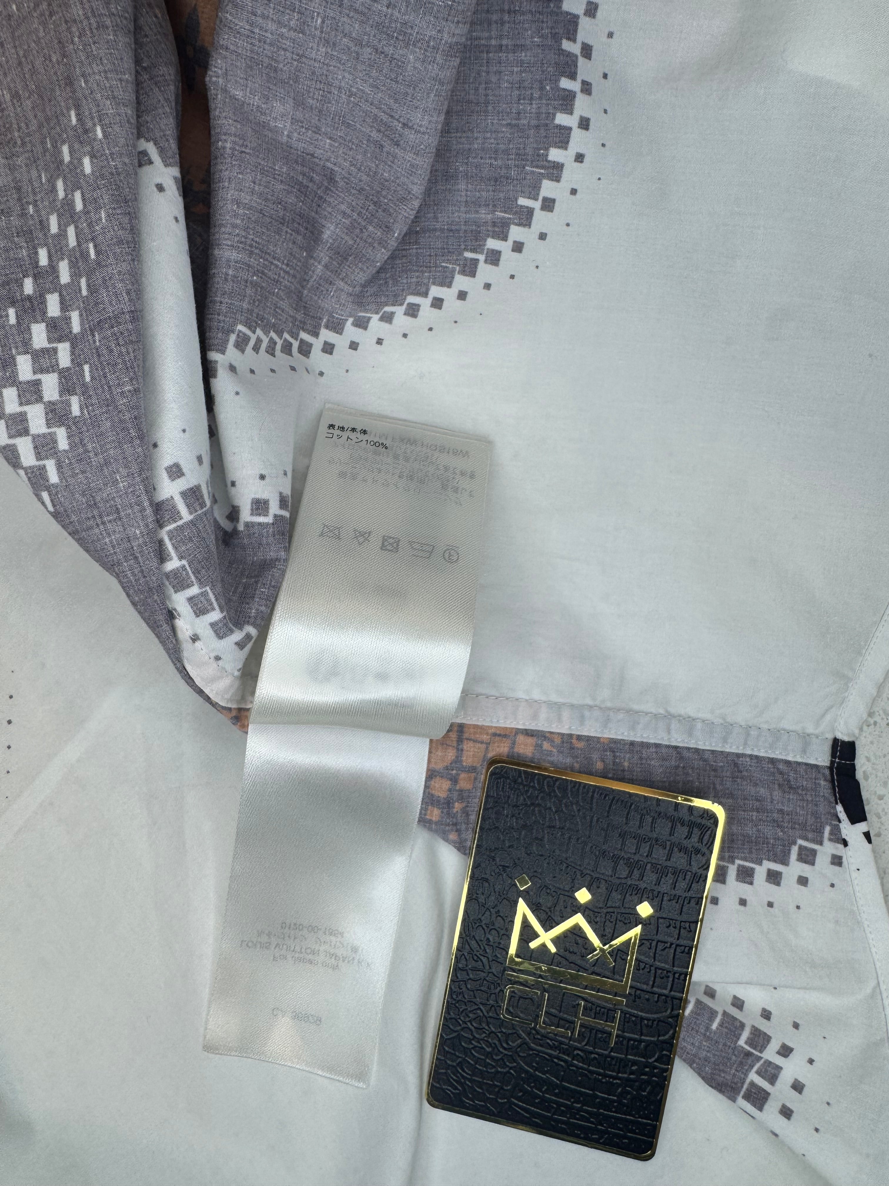 DETAILS: This Louis Vuitton Orange Map Camo White Shirt exemplifies the house’s commitment to innovative prints and refined tailoring. Crafted from crisp white fabric, this shirt is distinguished by its striking orange map camouflage motif, a contemporary reinterpretation of classic utility patterns. The lightweight texture and precise cut deliver structured ease and subtle volume at the shoulders.