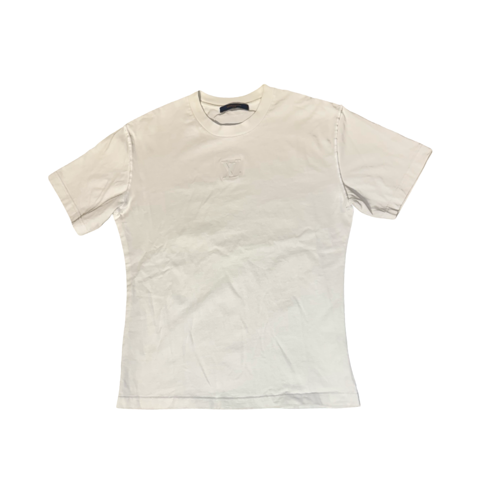 DETAILS: An essential item, this classic t-shirt in a soft compact cotton jersey is distinguished with a number of discreet House signatures, including inside-out seams on the shoulders and a silk intarsia inside-out label on the back. A tonal embroidered LV on the chest that is padded with silicon adds a final signature.