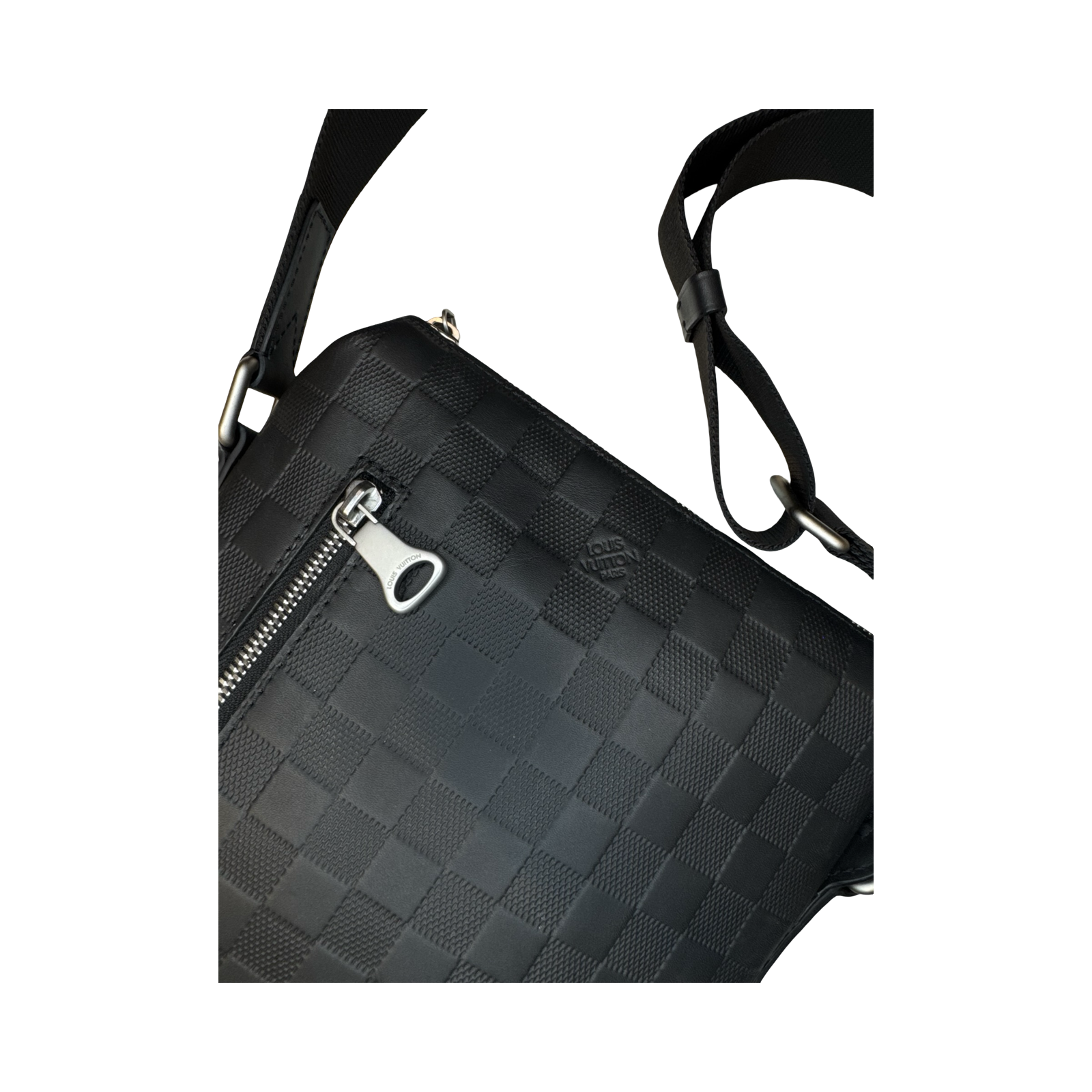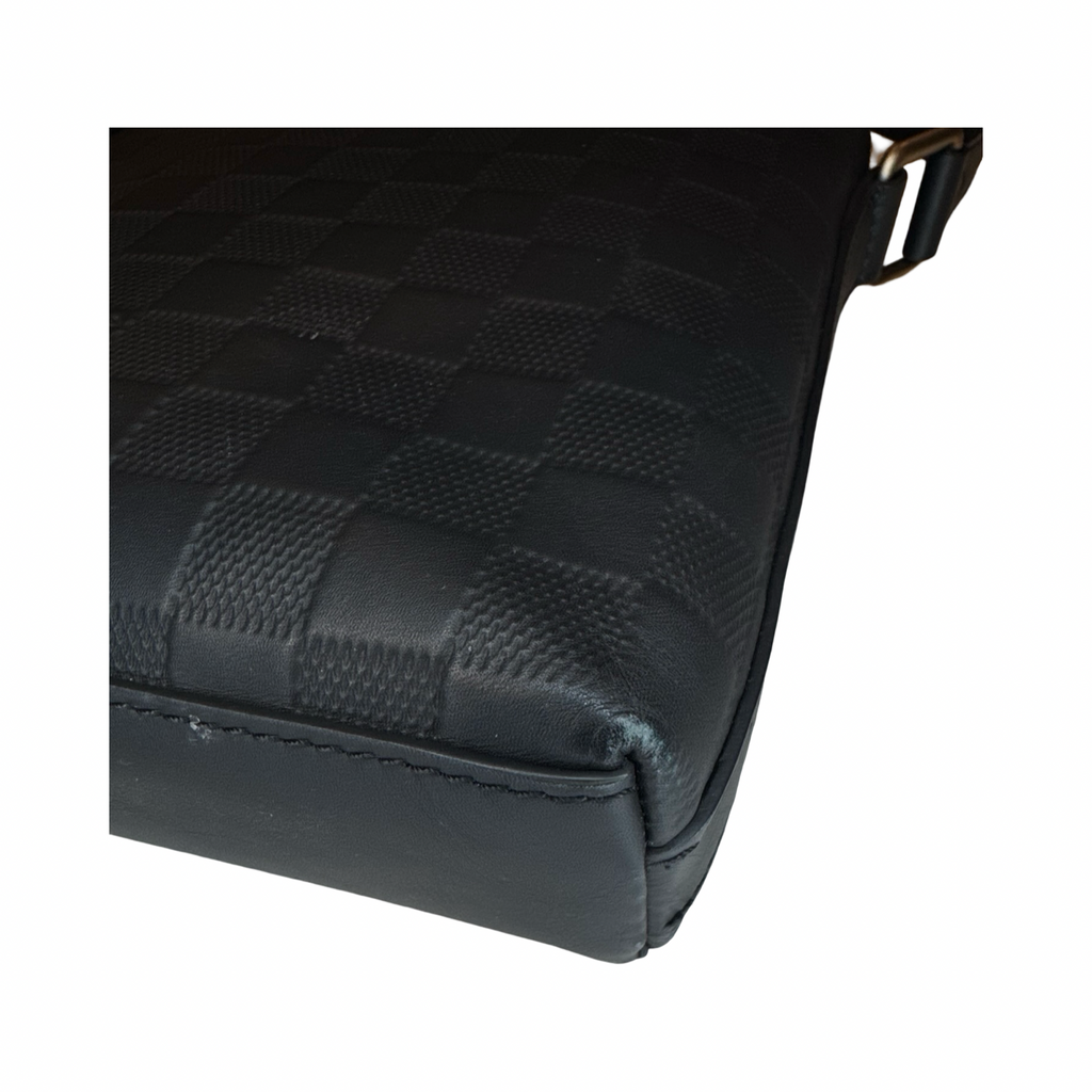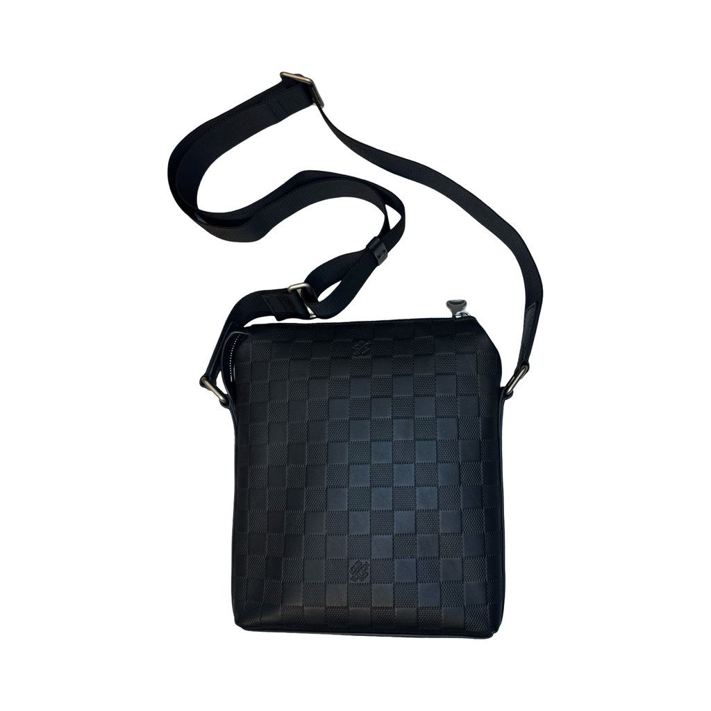 DETAILS: Louis Vuitton Damier Infini Discovery Messenger size BB. Damier Infini leather with brushed Silver-Tone Hardwar. Single Flat Adjustable Woven Shoulder Strap. Single Exterior Zip Pocket at Front. Tonal Woven Interior Lining. Single Slip Pocket at Interior Wall. Zip Closure Closure at Top.
