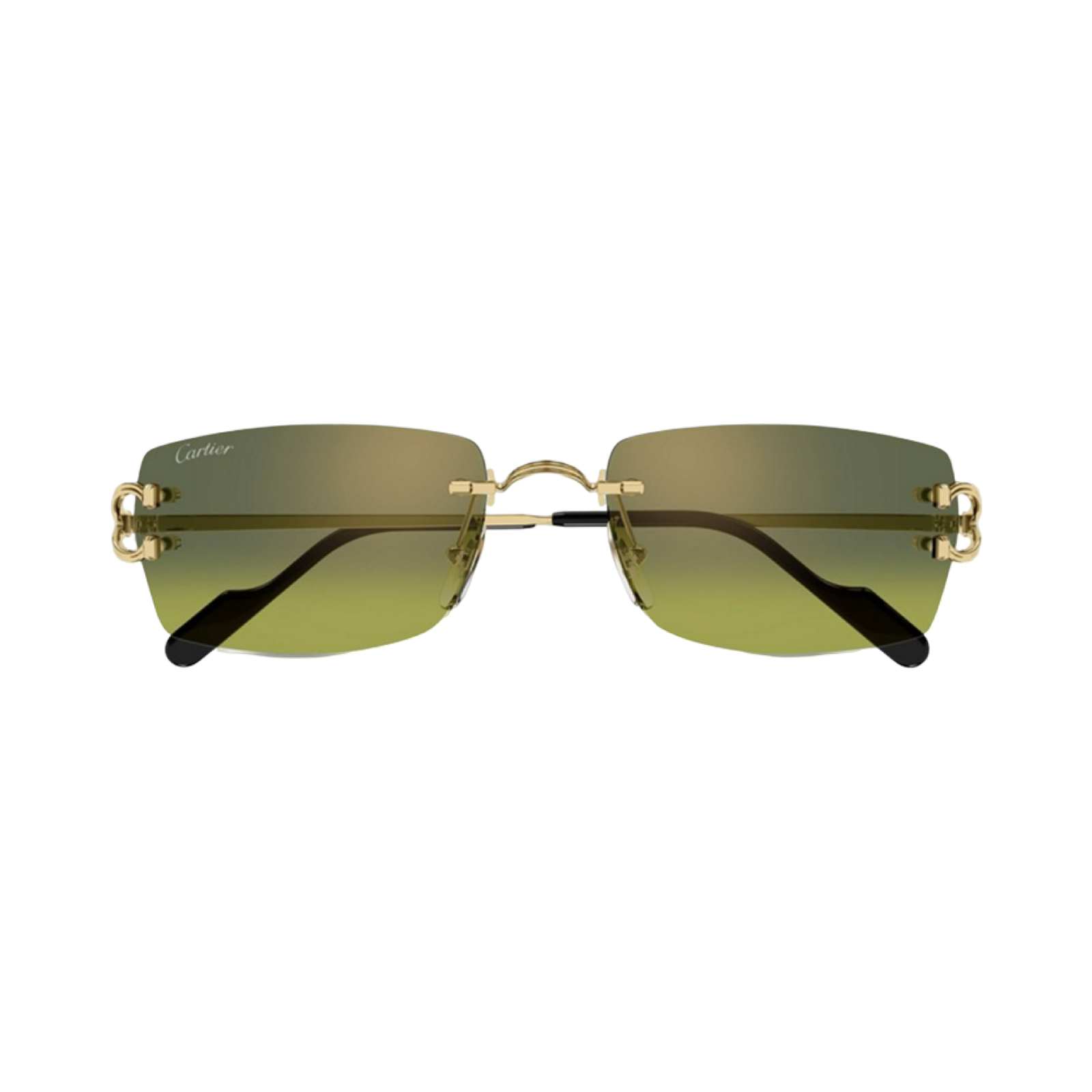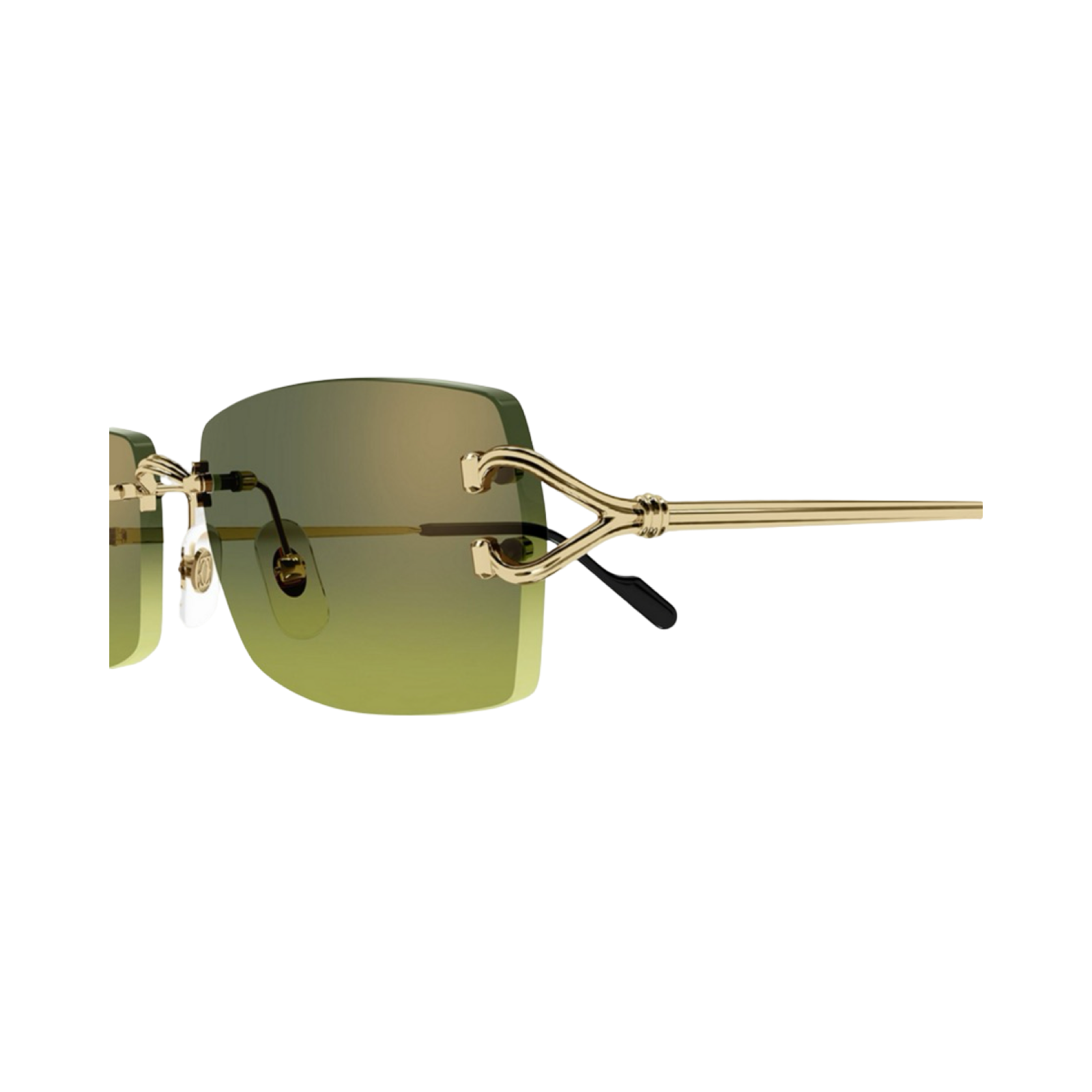 Décor Sunglasses with Classic C de Cartier motif in rimless metal frame with a smooth golden-finish, rectangular shape and graduated GREEN lenses. Dimensions: 56 mm lenses, 18 mm bridge, 140 mm temples.
