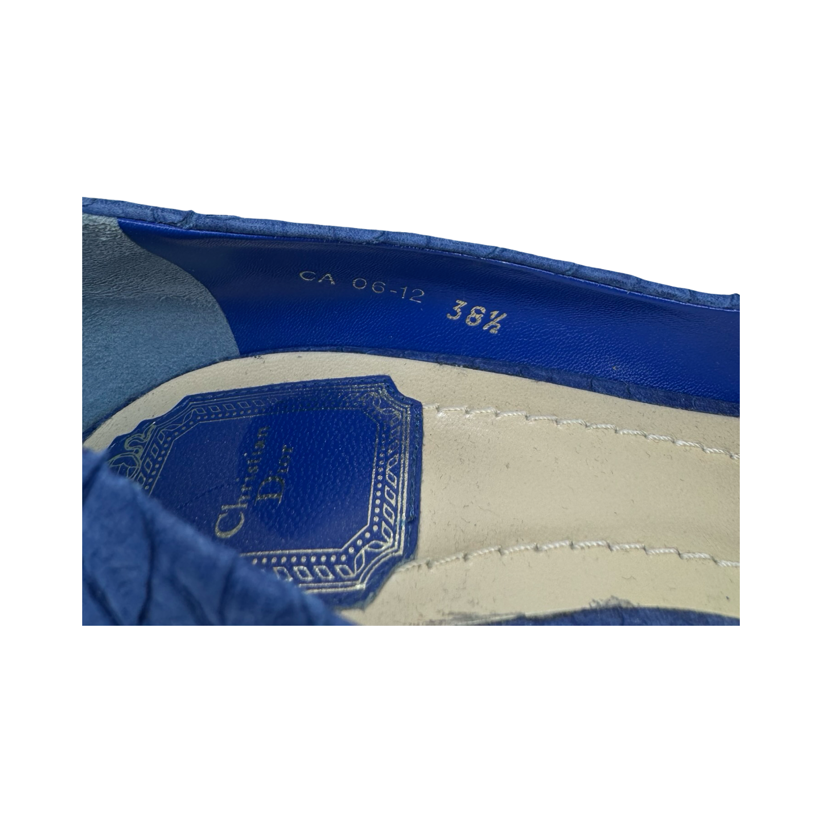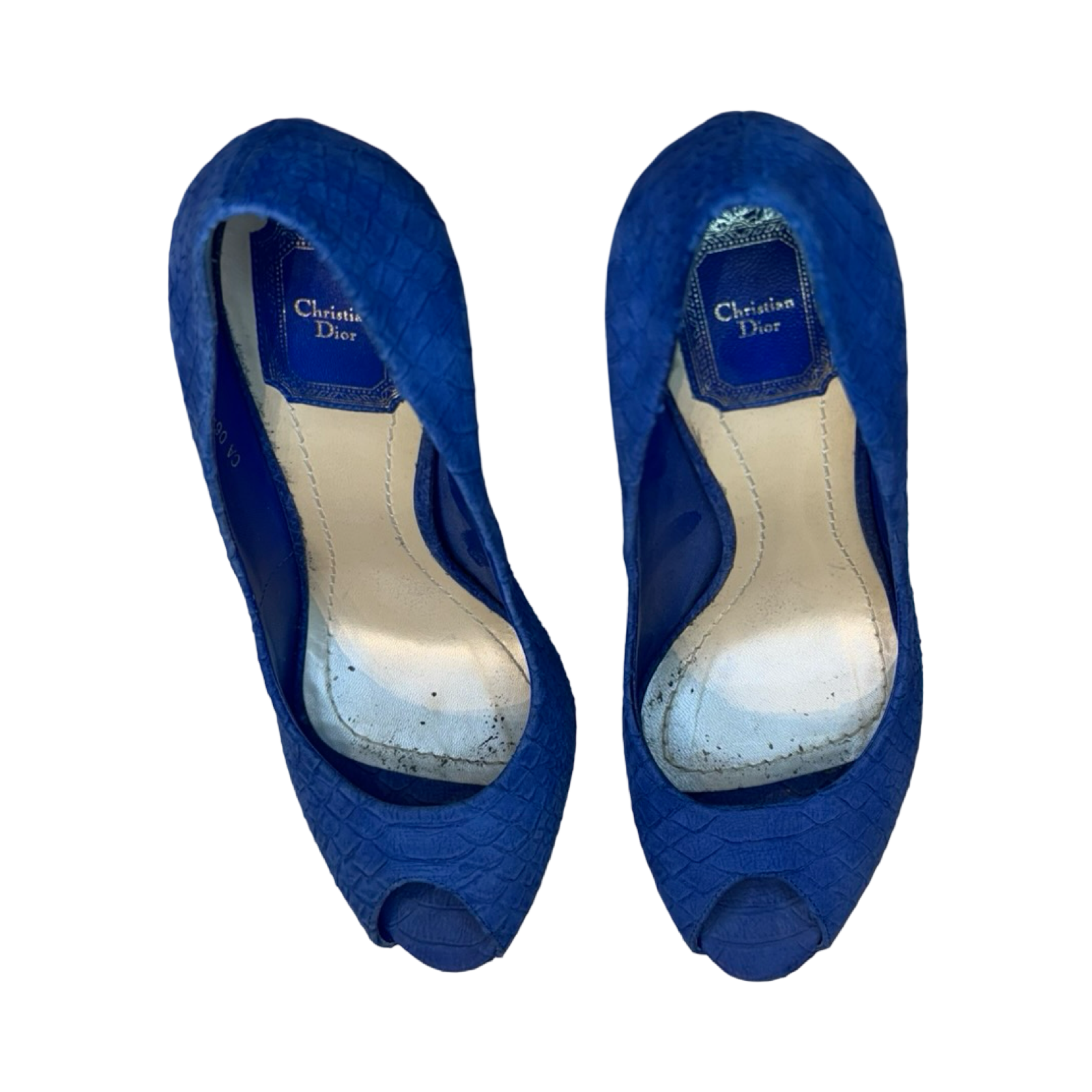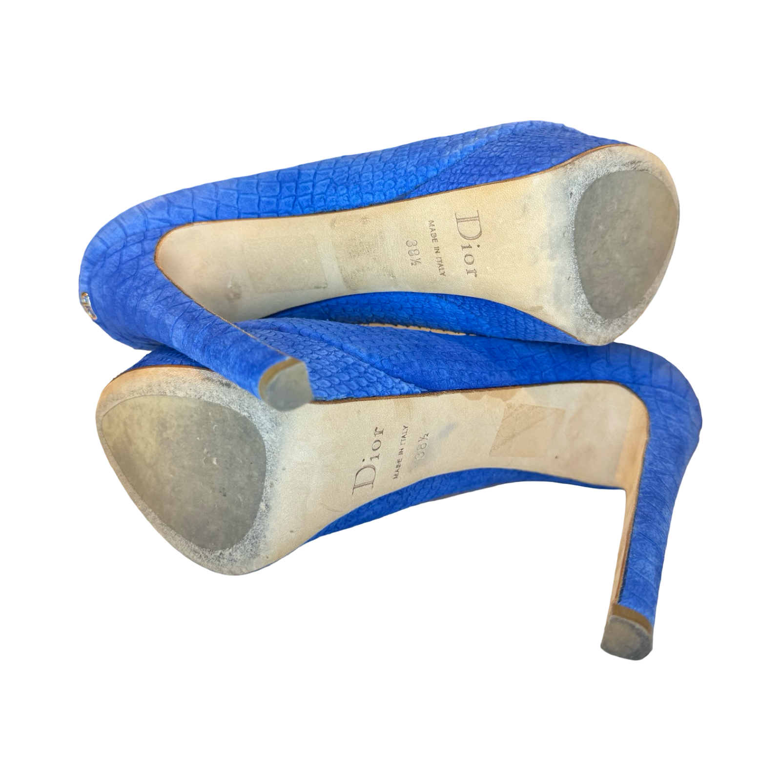 DETAILS: DIOR heels python embossed in suede. The colour is: electric blue. Gold "CD" emblem on the back.