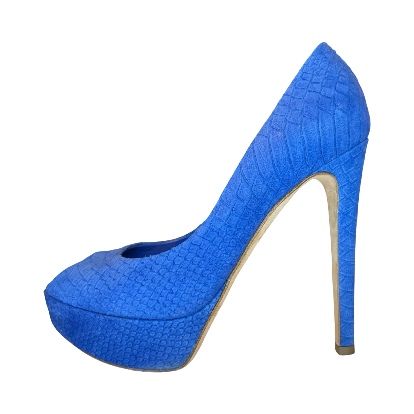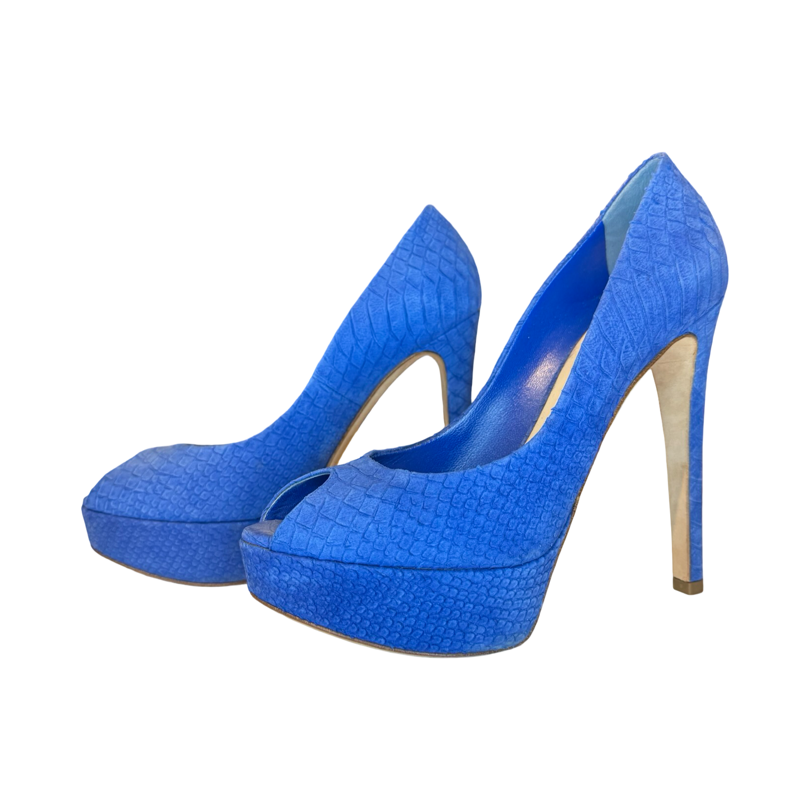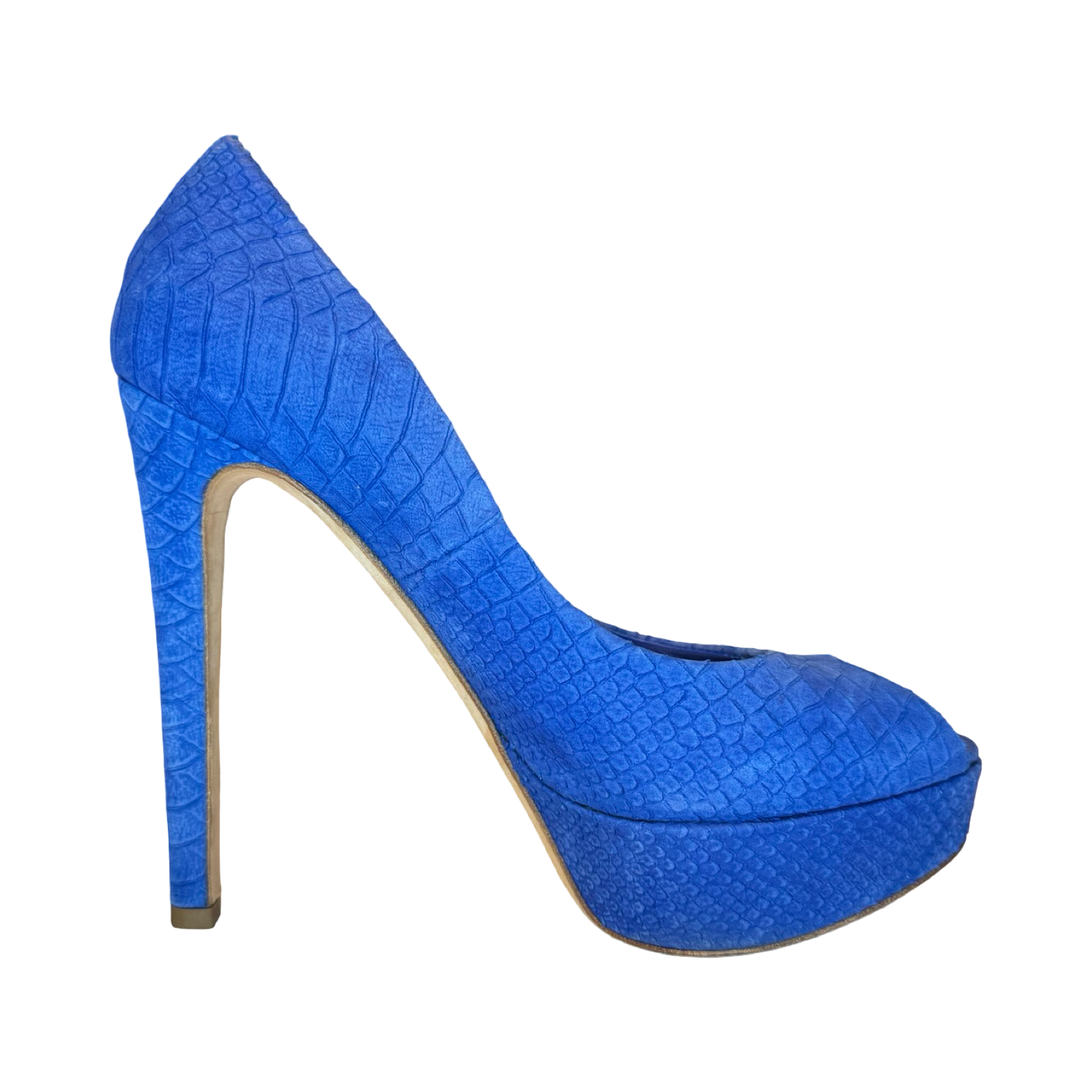 DETAILS: DIOR heels python embossed in suede. The colour is: electric blue. Gold "CD" emblem on the back.