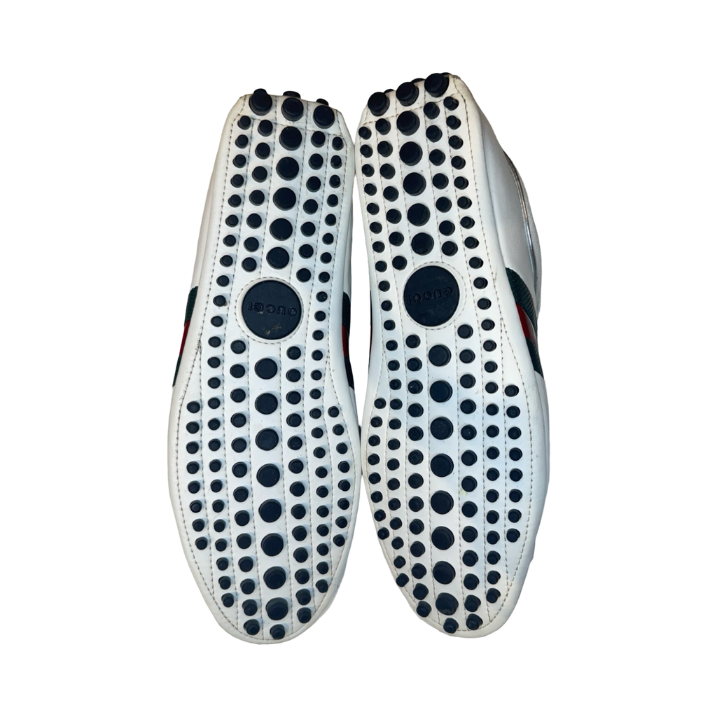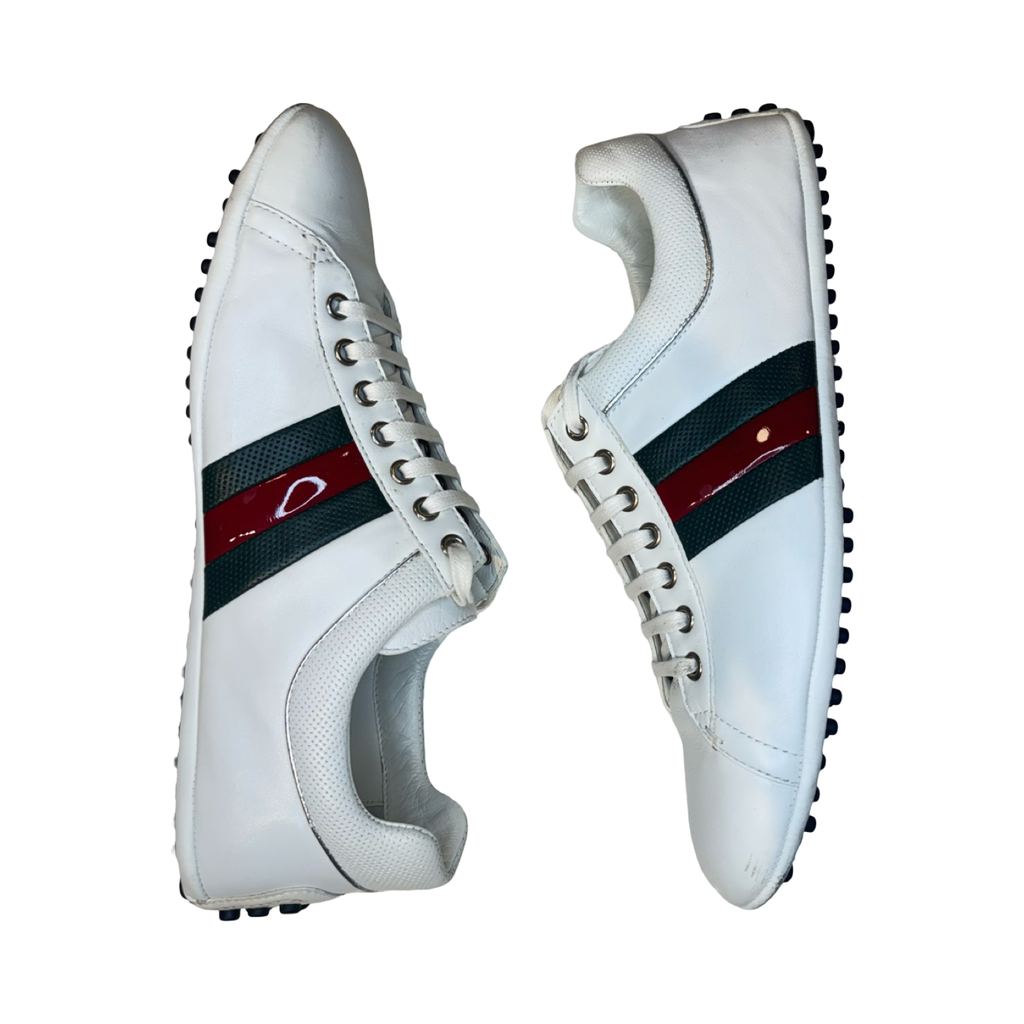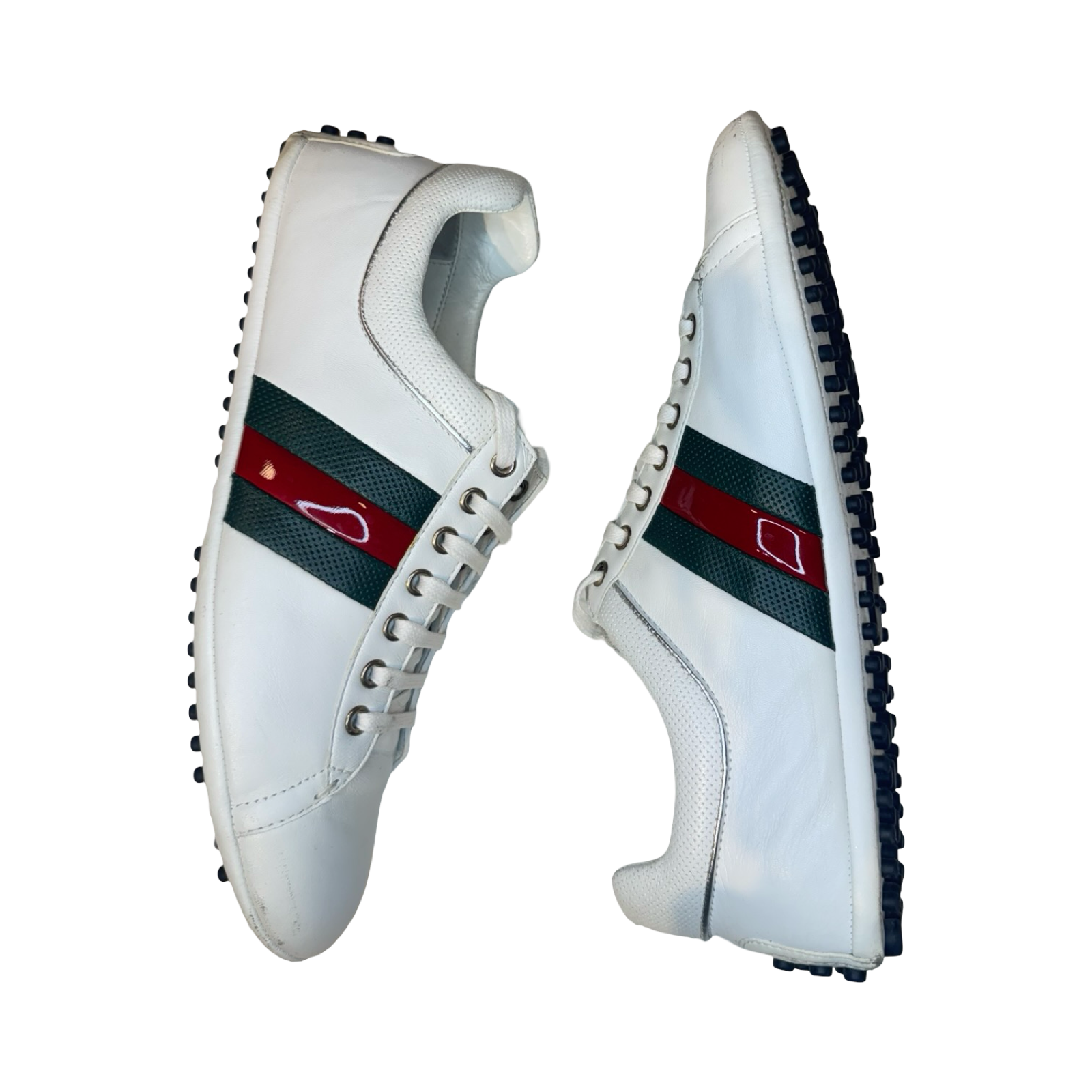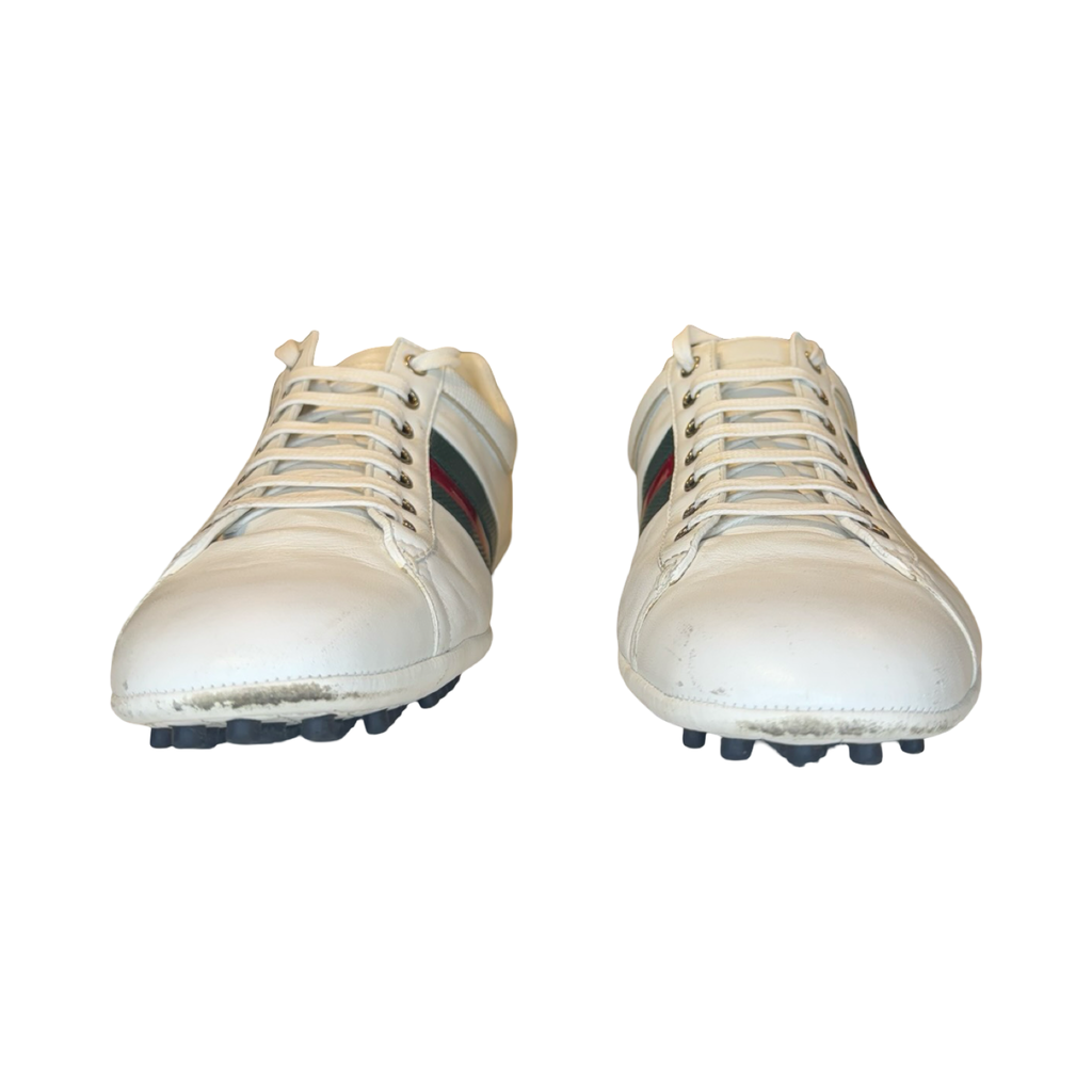 DETAILS: Gucci sneakers made in white leather featuring the supreme web on the side, lace closure and rubber grips that goes beyond the heel. Made in Italy.