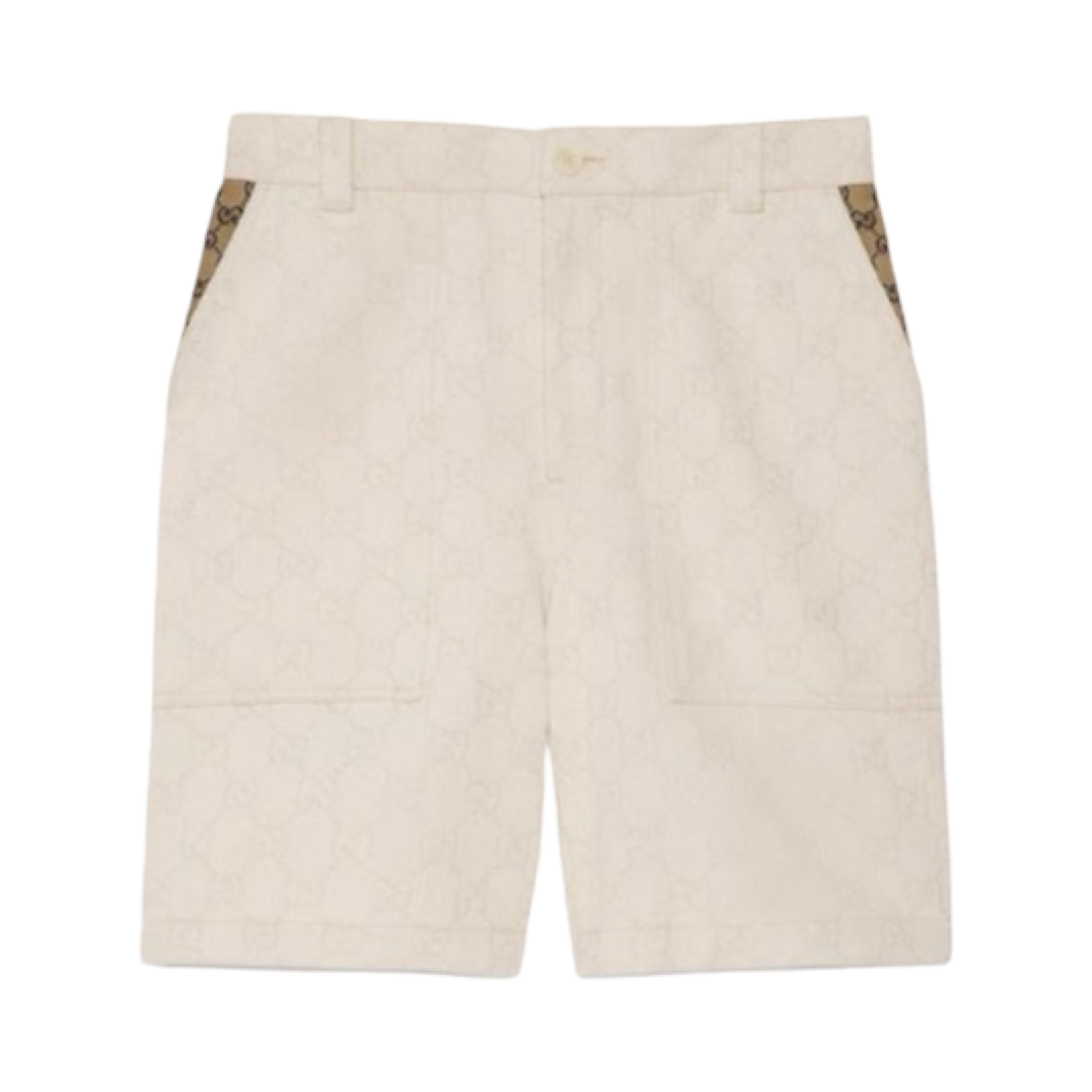DETAILS: A pastel color palette brightens the wardrobe on cold days, adding an unexpected, contemporary twist. Here the GG motif decorates this cotton shorts, button closure and string adjustment, classic brown GG on the inside pocket and supreme stripe on each side.