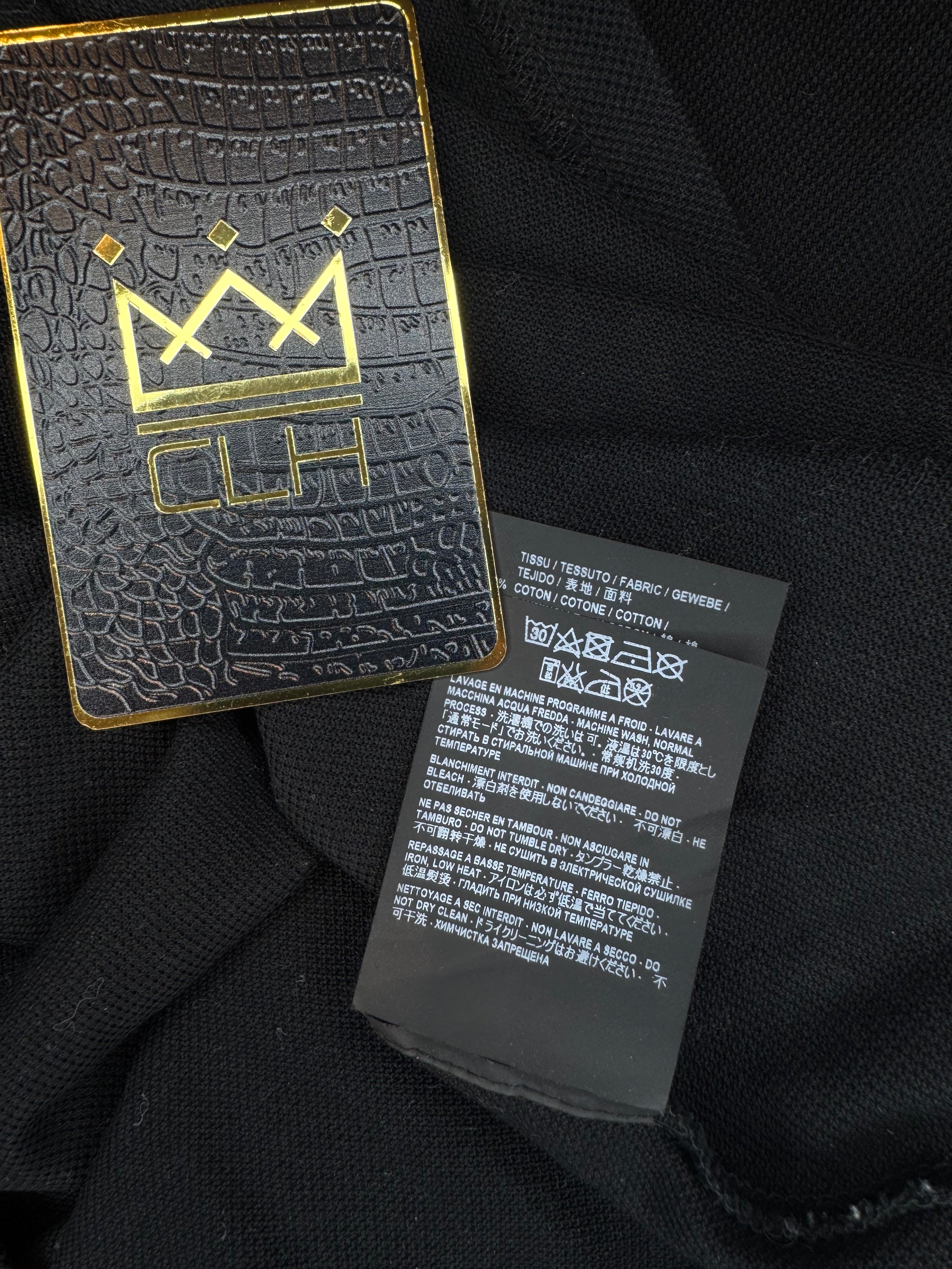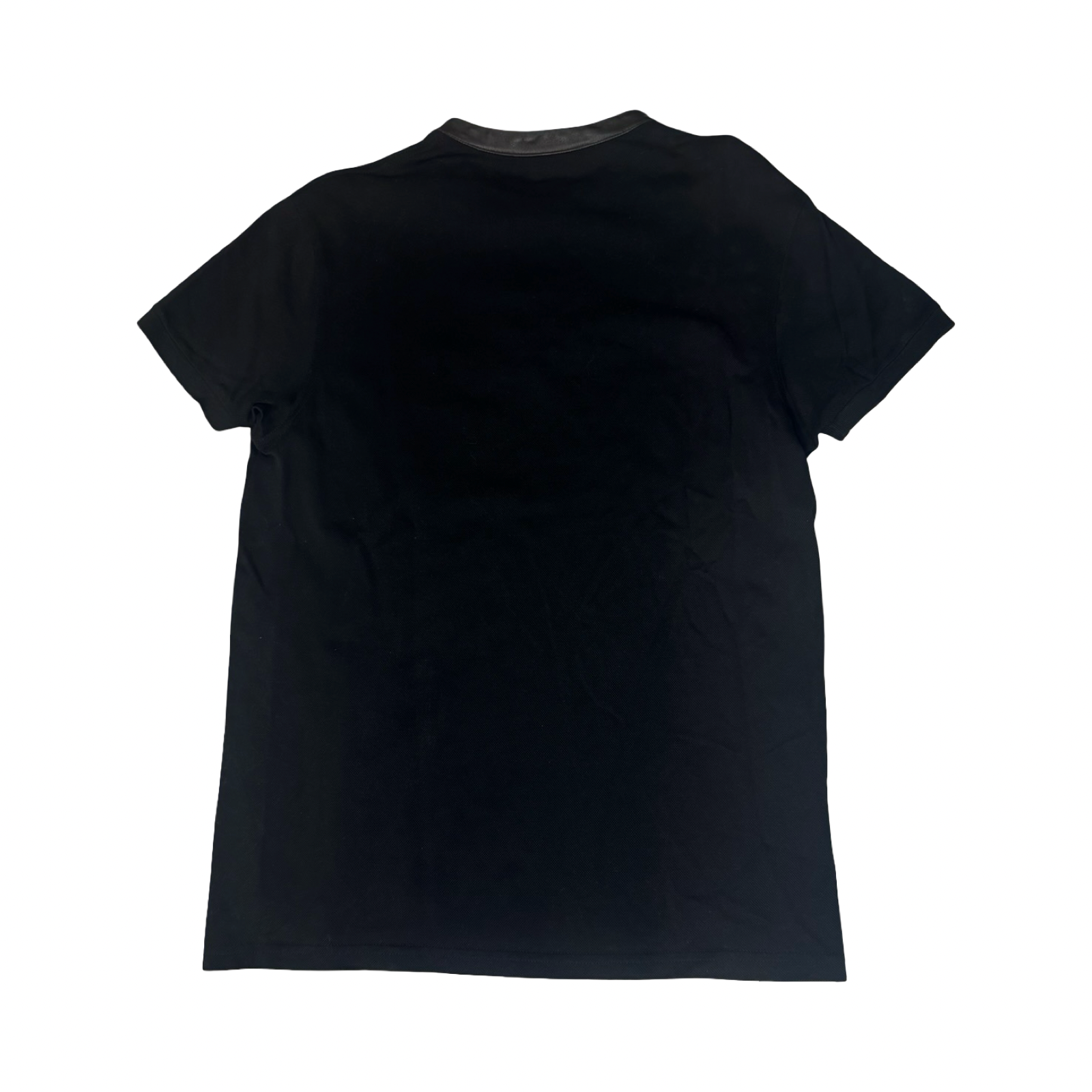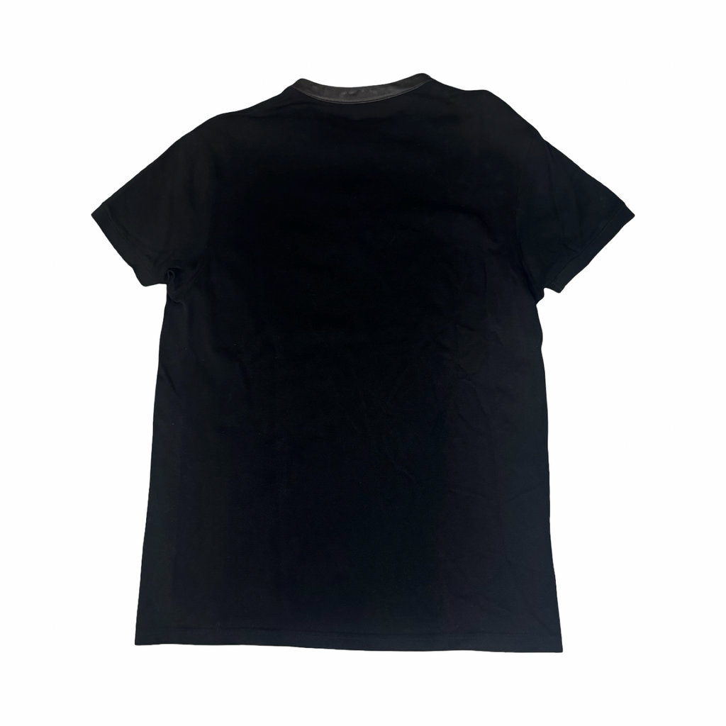 DETAILS: Short sleeve T-shirt in black with YSL embroidered logo on the front. Slim fit. Leather lining on the collar. Made in Italy.
